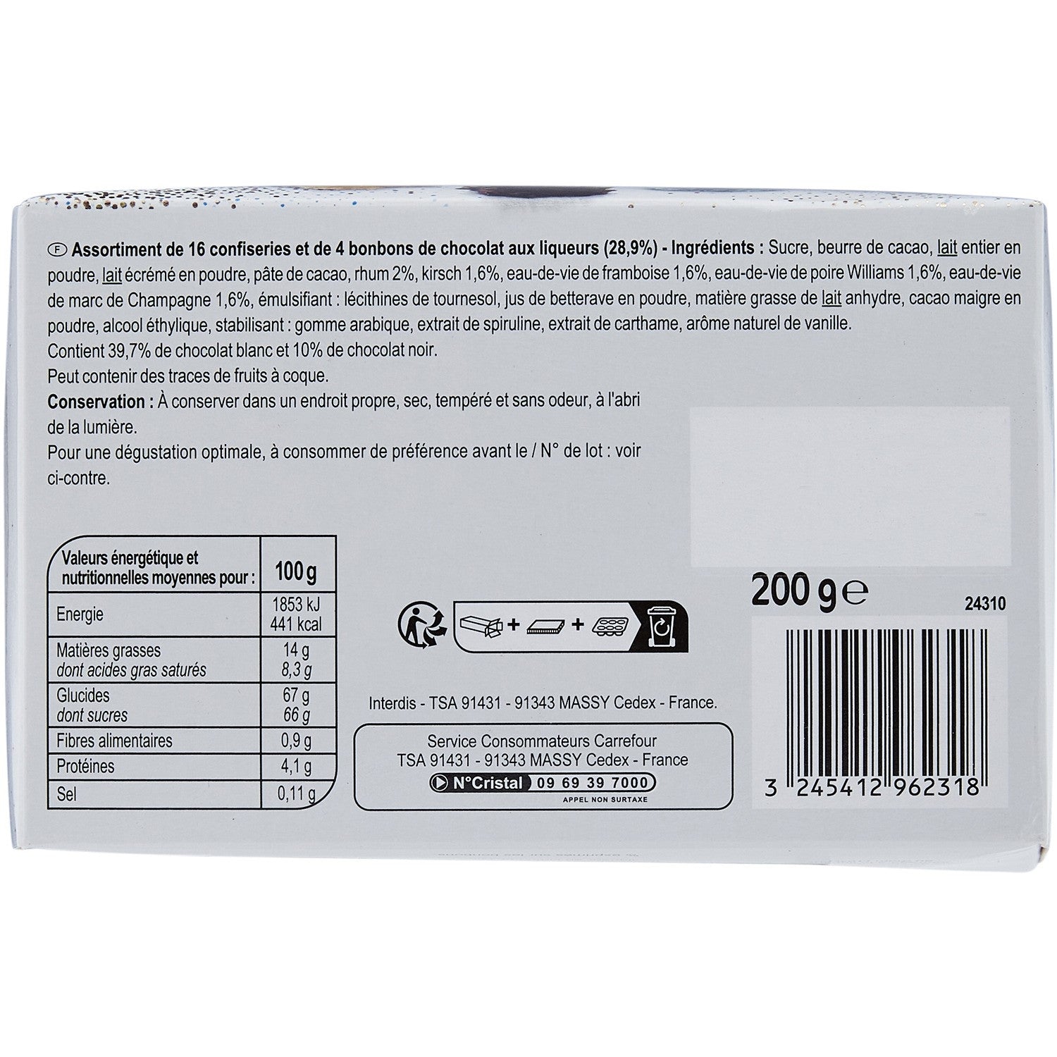 Assortment of 16 sweets and 4 chocolate liqueur candies (28.9%)