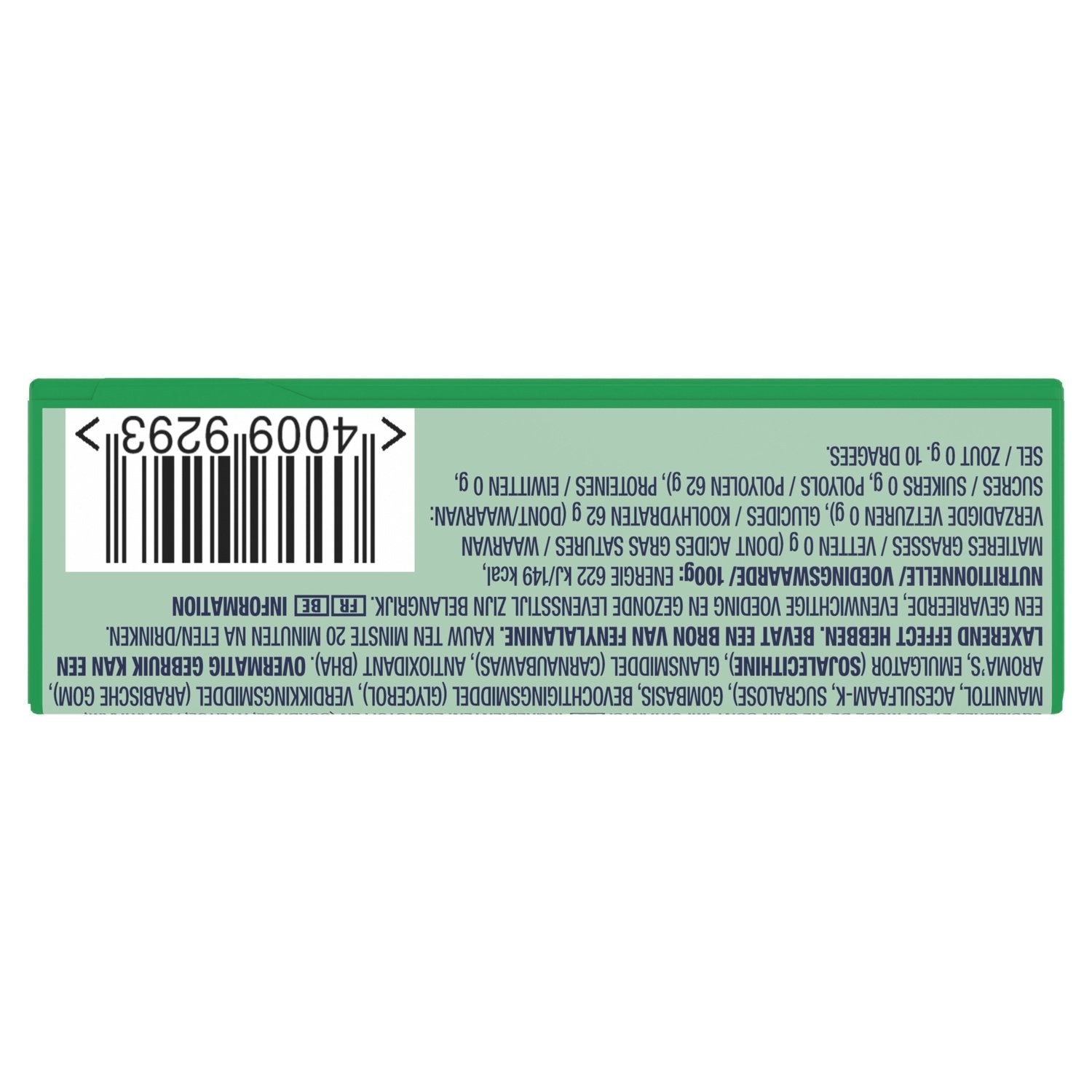 Ingredients: Sweeteners (Sorbitol, Xylitol, Aspartame, Mannitol, Acesulfame-k, Sucralose), Gum Base, Humectant (Glycerol), Thickener (Gum Arabic), Flavorings, Emulsifier (SOY Lecithin), Glazing Agent (Carnauba Wax), Antioxidant (Bha).