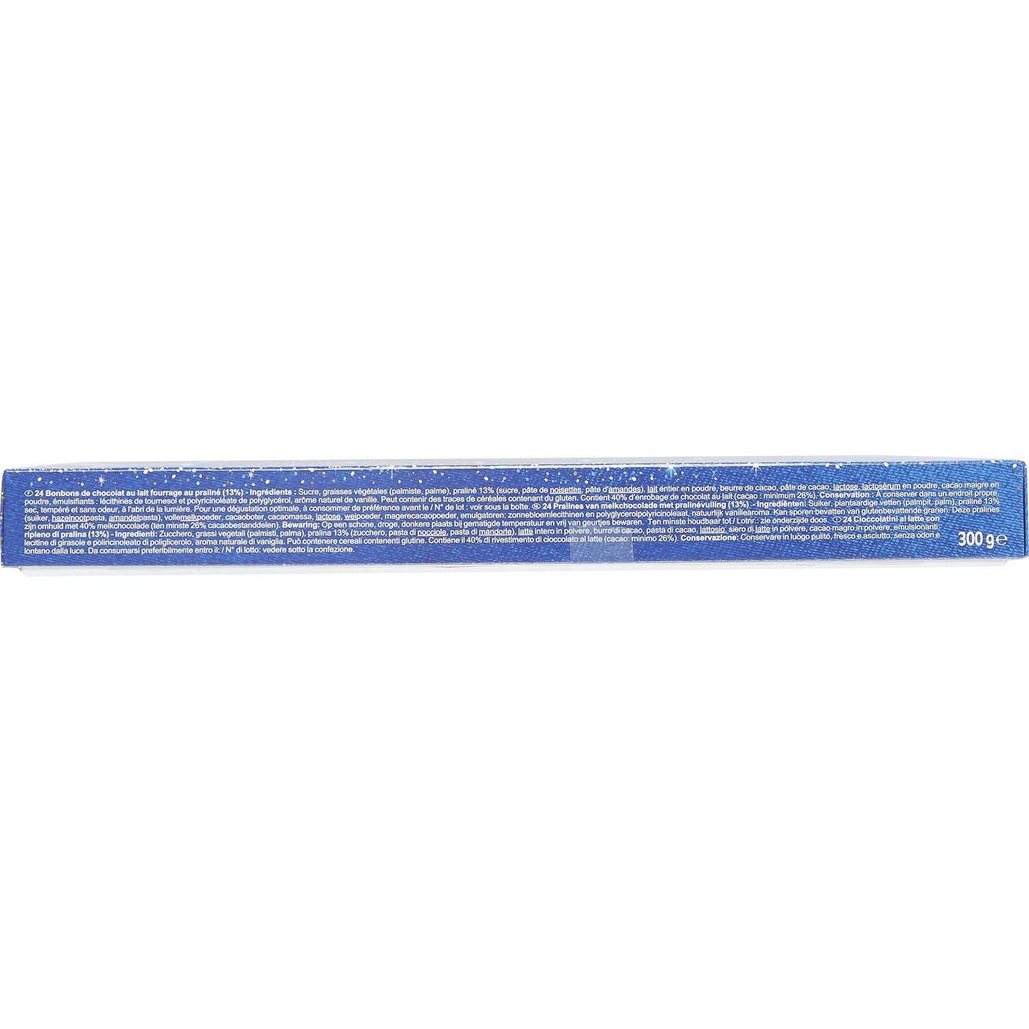 Sugar, vegetable fats (palm kernel, palm), praline 13% (sugar, HAZELNUT paste, ALMOND paste), whole MILK powder, cocoa butter, cocoa mass, LACTOSE, WHEY powder, fat-reduced cocoa powder, emulsifiers: sunflower lecithins and polyglycerol polyricinoleate, natural vanilla flavoring. Contains 40% MILK chocolate coating (minimum 26% cocoa).
