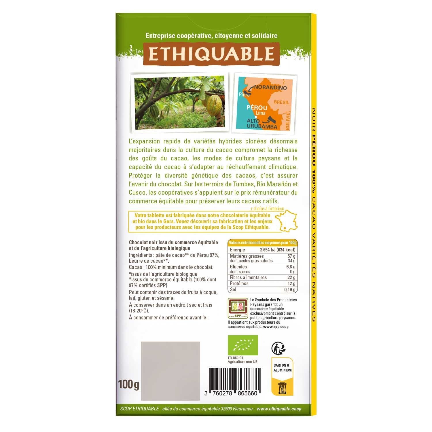 Organic 100% Cocoa Round Dark Chocolate and Peruvian Chocolate ETHIQUABLE