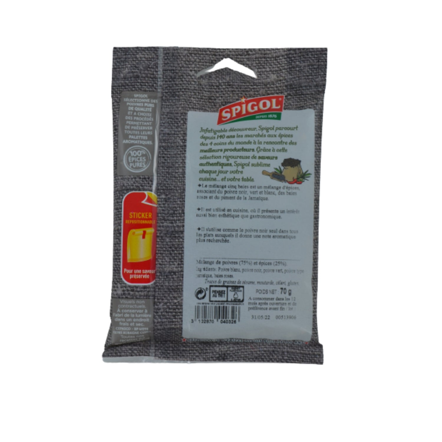 Appreciated for its complex and rich flavors, our blend combines five types of berries with distinct aromas, creating a perfect balance between spiciness, sweetness, and depth. Composed of black pepper, white pepper, green pepper, pink berries, and allspice, our blend offers a balanced palette, with spicy, fruity, and floral notes, all accompanied by a slight spiciness. A must-have in the kitchen, it brings a subtly spicy and fragrant touch to your dishes: steaks, roast chicken, marinades, fish en croûte, tartare, carpaccio, etc.