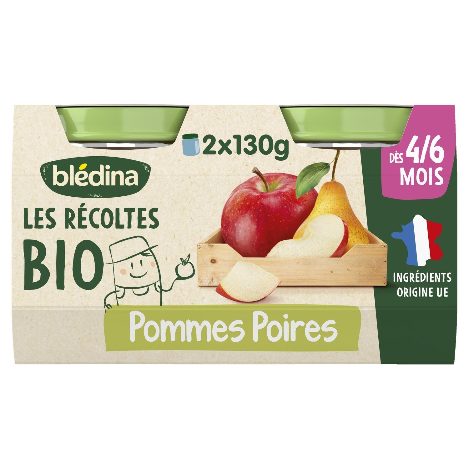 Baby Compote From 4-6 Months Apples Pears Les Récoltes Bio BLEDINA