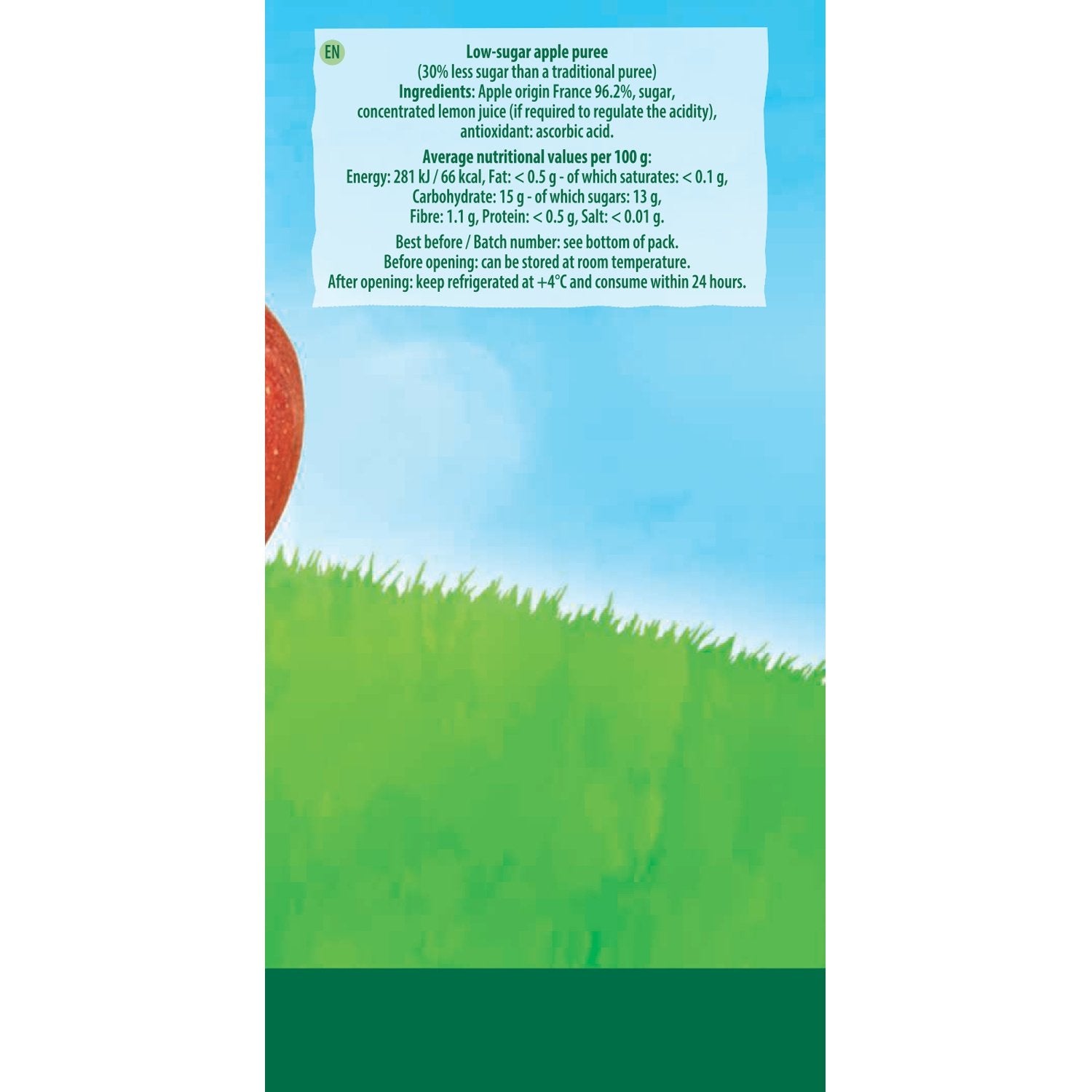 Apple from France 96.2%, sugar, concentrated lemon juice (if necessary to regulate acidity), antioxidant: ascorbic acid.