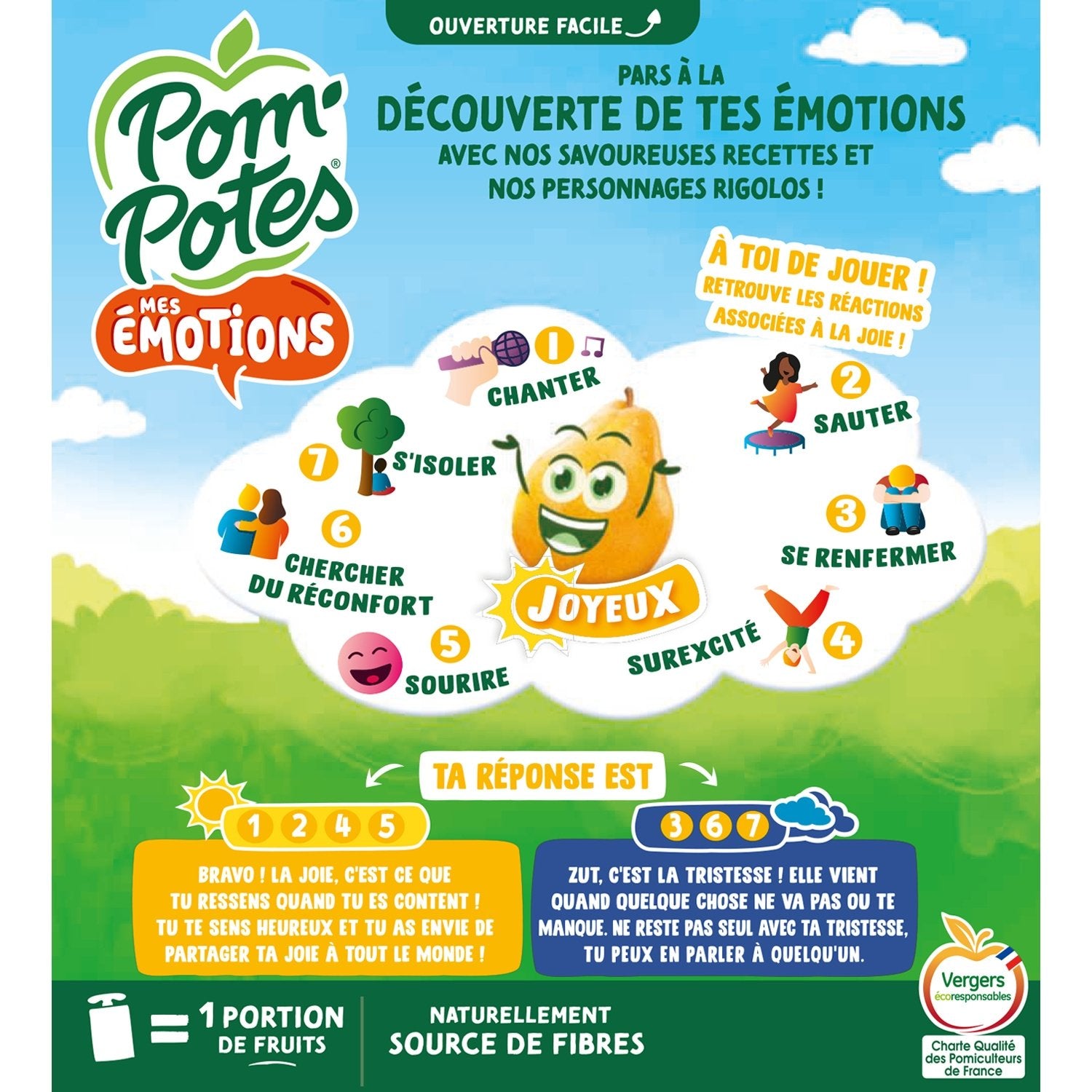 Pom'Potes® Mes Emotions are recipes with delicious fruit blends, where each recipe is represented by an emotion, itself represented by a funny character. A fun way for your children to talk about their emotions!