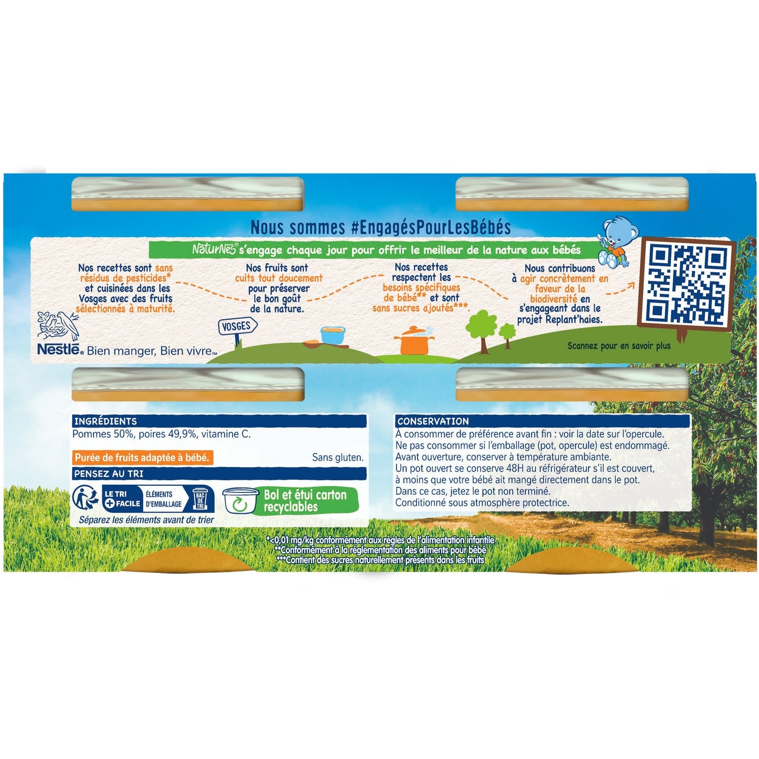 Fruits selected at maturity for their taste, Gentle cooking to preserve the good taste of nature, A smooth texture suitable for your baby, Produced in France in the Vosges. Apples from the EU. Pears from the EU/non-EU., No added sugars¹, no pesticide residues (