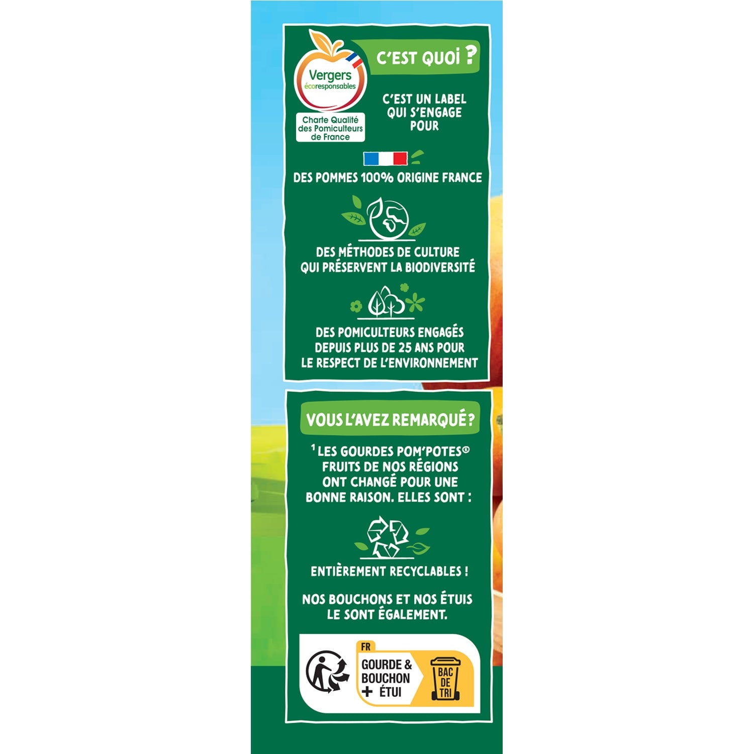 POM'POTES® Fruits of Our Regions is the delicious combination of French apples from eco-responsible orchards and a good fruit from our regions. At POM'POTES®, we are committed to the well-being and pleasure of young and old! Each of our pouches has no added sugars* and corresponds to 1 of the 5 portions of fruits and vegetables recommended daily. *Contains naturally occurring sugars