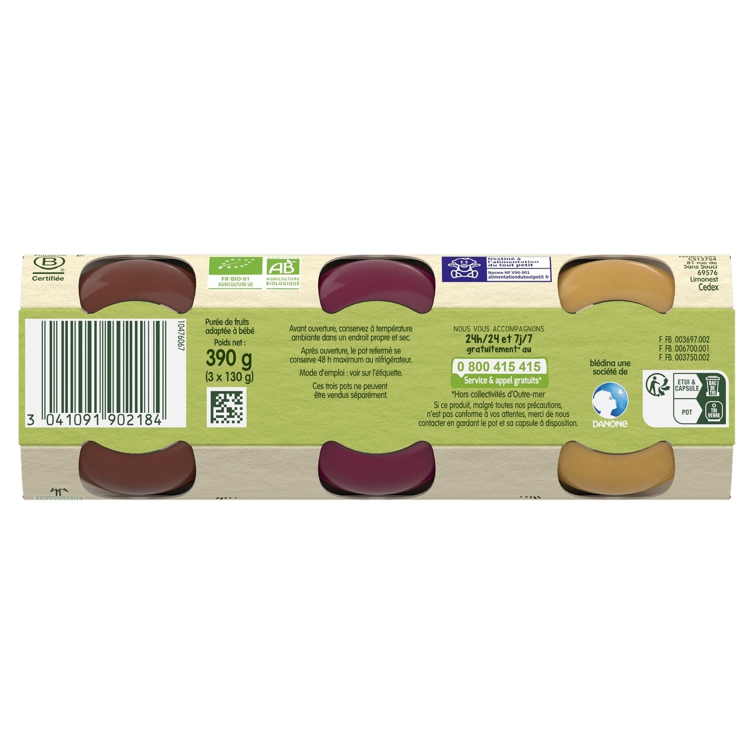 Baby Food Pot Compotes From 4-6 Months Apples Blackberries Prunes Les Récoltes Bio BLEDINA