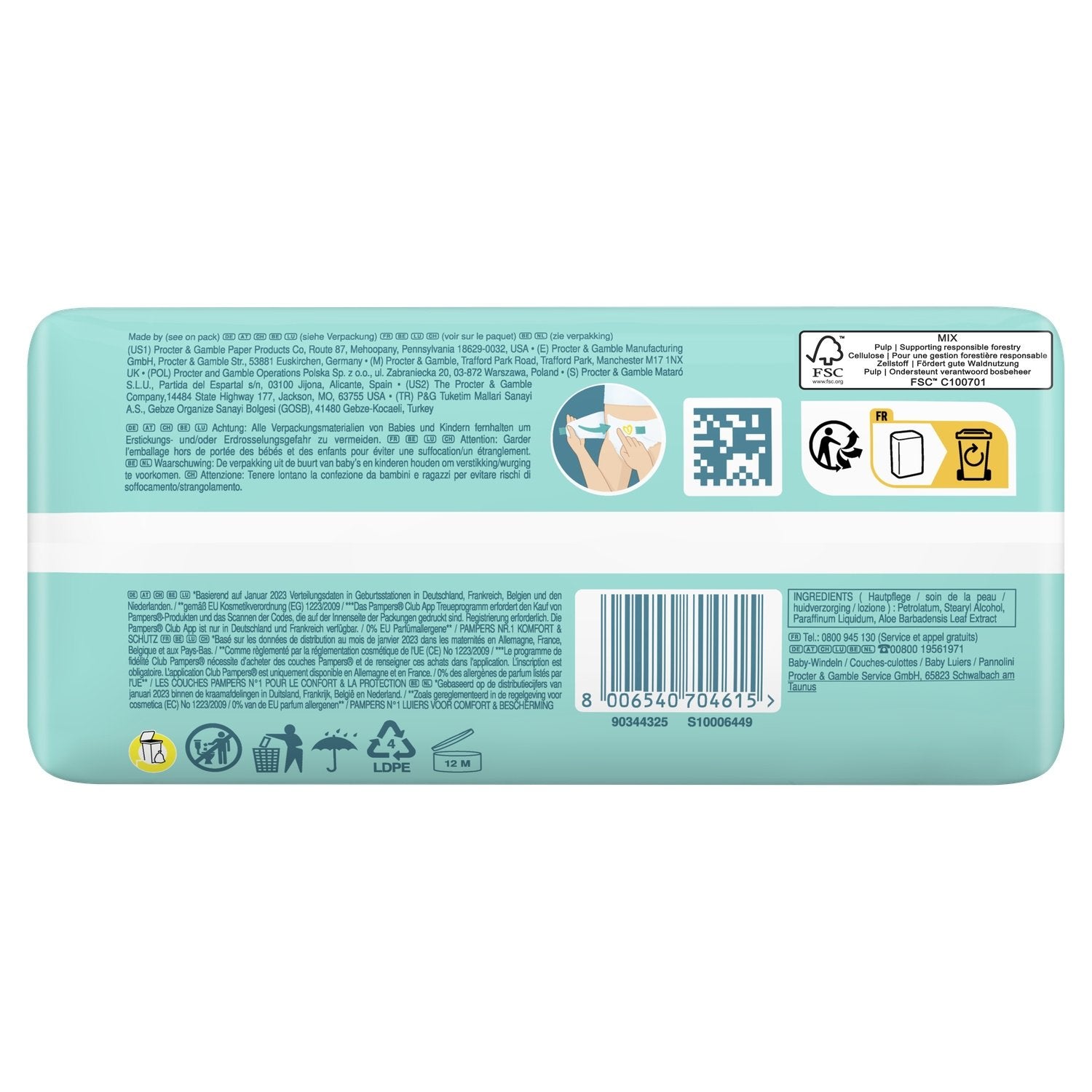 Double protection: for skin and against leaks. Pampers No. 1 diapers for comfort and protection for sensitive skin - tested and approved by babies! We designed the Pampers No. 1 diaper specifically for the delicate skin of newborns. It's also our No. 1 diaper against leaks. Pampers Premium Protection diapers offer our best protection, thanks to 1) instant absorption, with millions of absorbent micro-vents that instantly pull wetness and loose stools away from the skin and trap them inside the diaper. Keeping your baby's delicate skin dry and protected. 2) A unique Stop & Protect pocket to prevent leaks at the back of the diaper. 3) Ultra-soft materials to wrap your baby in a cloud of comfort and protection. And 4) our unique Comfort Fit technology with a stackable fastener system. Pampers Premium Protection diapers, the #1 choice of maternity wards in France*, are 100% safe for your baby's skin. They are dermatologically tested and do not contain any of the EU-listed fragrance allergens (as regulated by EU Cosmetic Regulation No. 1223/2009). No wonder babies approve! *Based on distribution data as of January 2023 in maternity wards in France