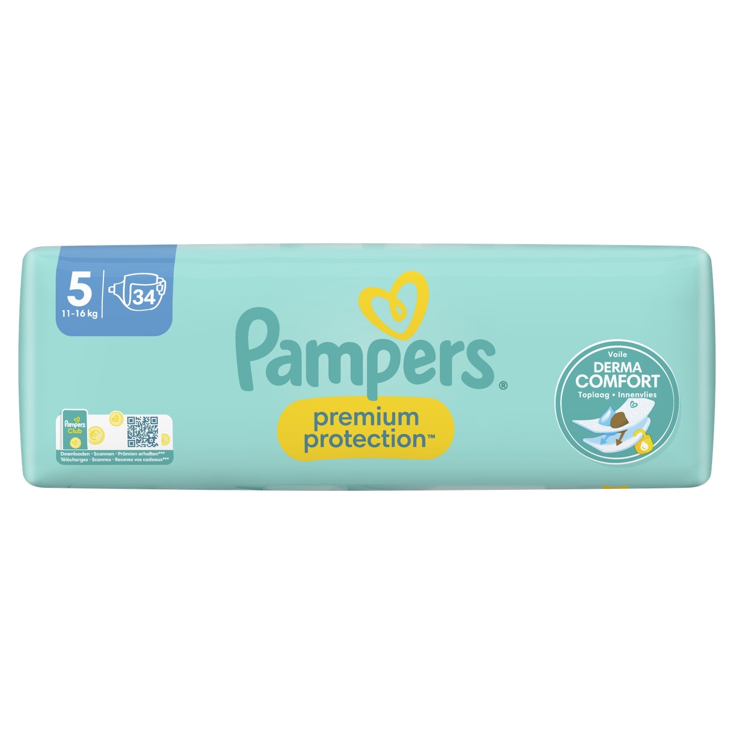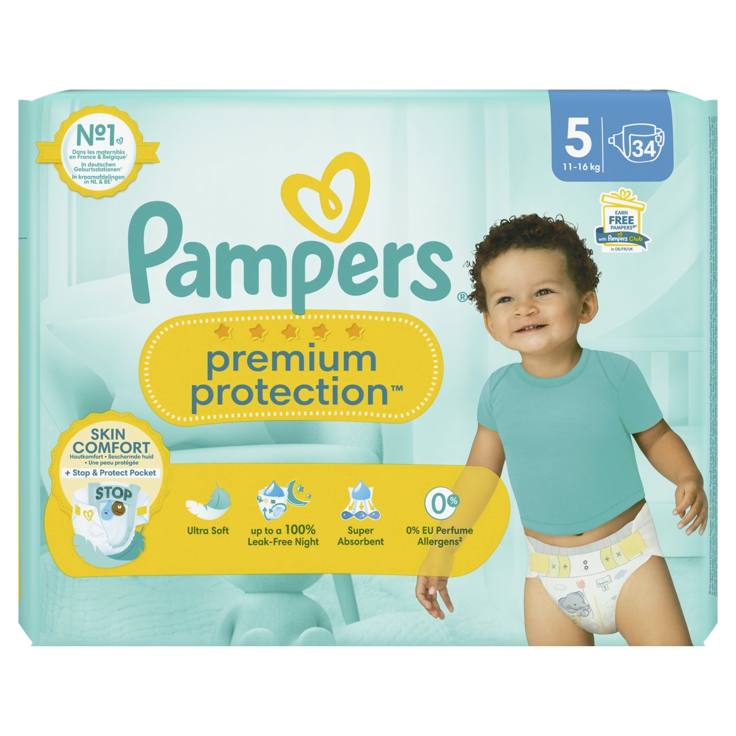 Pampers Premium Protection Size 5, Diapers x34, 11kg-16kg, Double Protection for Skin and Against Leaks