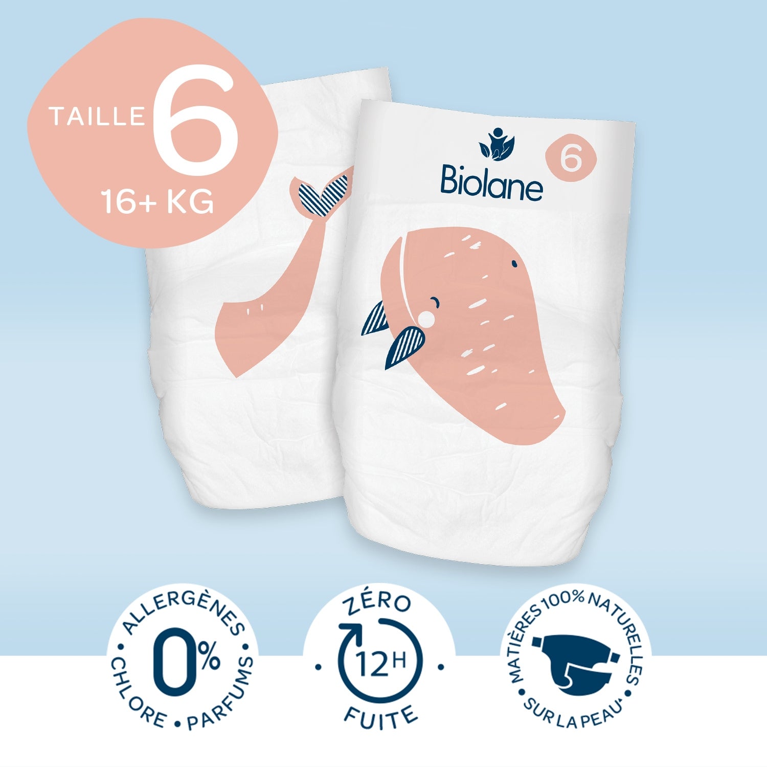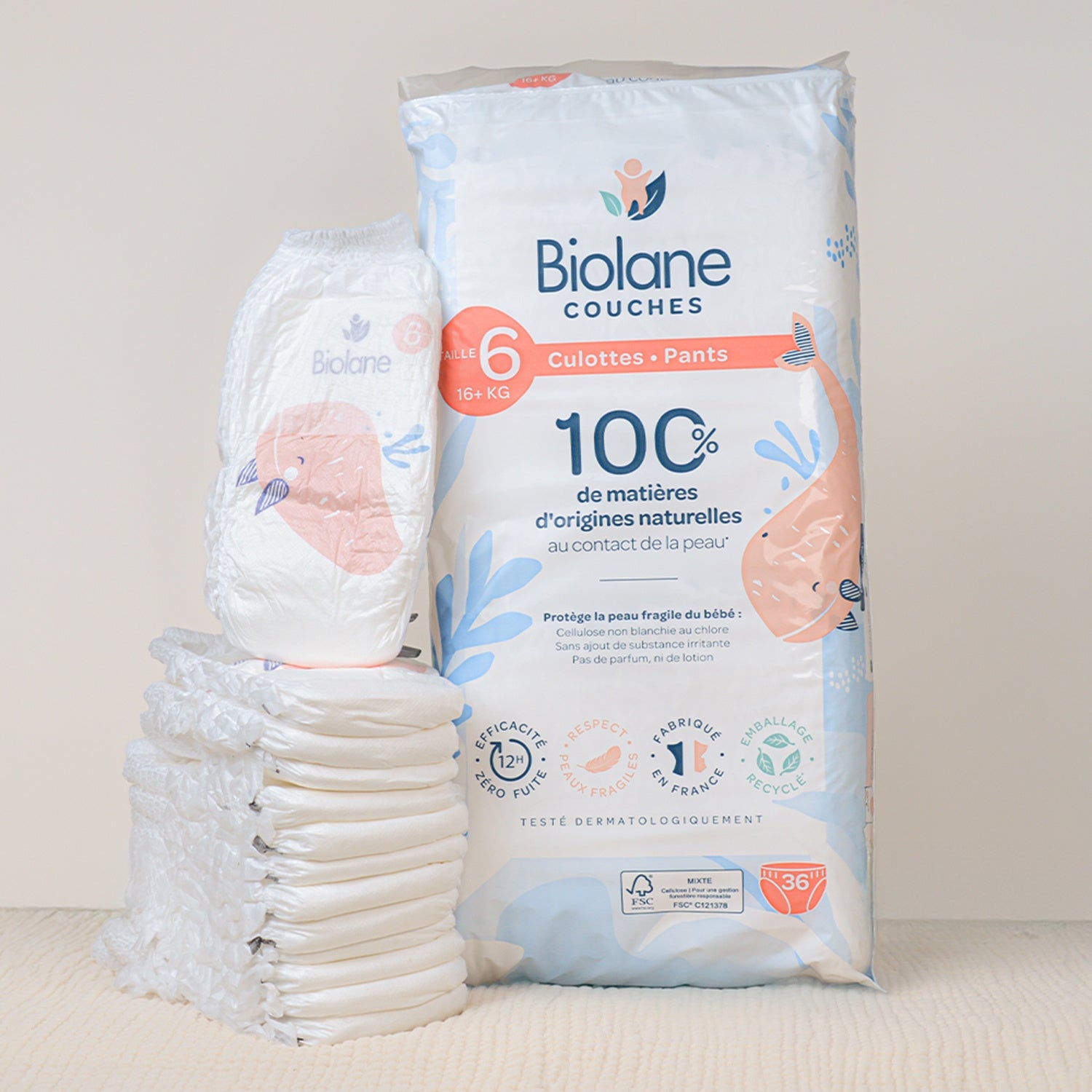 100% of the materials in contact with the skin are of natural origin Protects your baby's fragile skin: without the addition of irritating or toxic substances 12h anti-leak protection Ultra-absorbent core: acquisition layer that evenly distributes fluids Comfort guaranteed in all circumstances: ultra-soft and fluffy Diaper made from materials of natural origin designed with priority given to renewable energies Made in France Packaging made from 80% recycled materials A Biolane animal for each diaper size