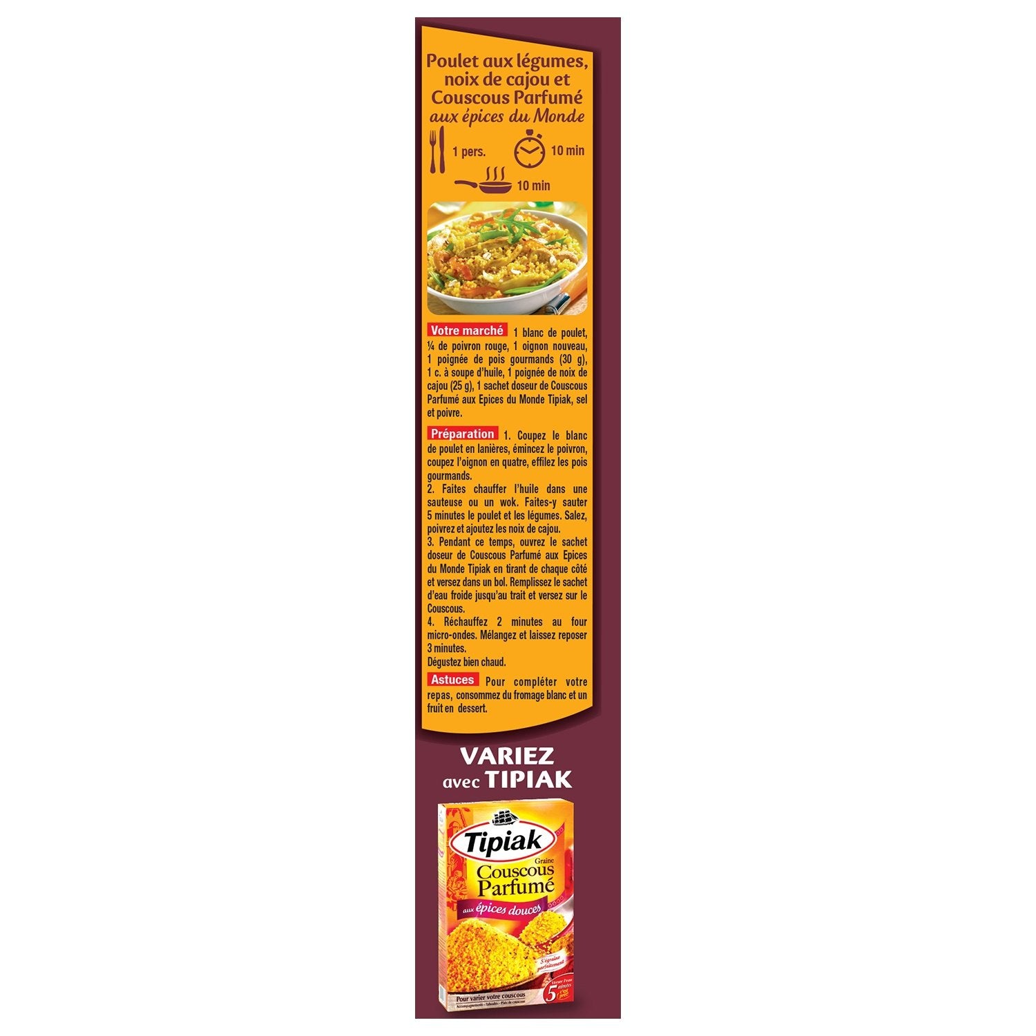 Tipiak offers you Couscous flavored with spices from around the world in sachets for 1 person, always successful at home or on the go, easily and quickly thanks to its measuring sachet.