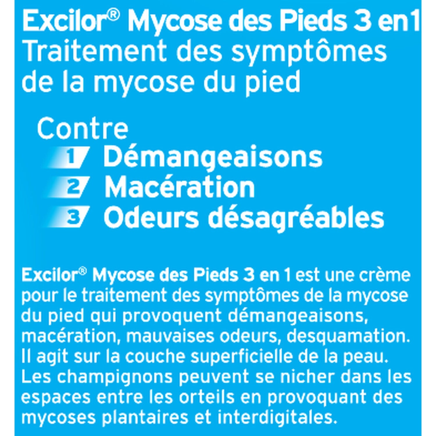 Excilor Foot Fungus 3 in 1 treats the 3 symptoms of foot fungus in 7 days: itching, maceration, unpleasant odors