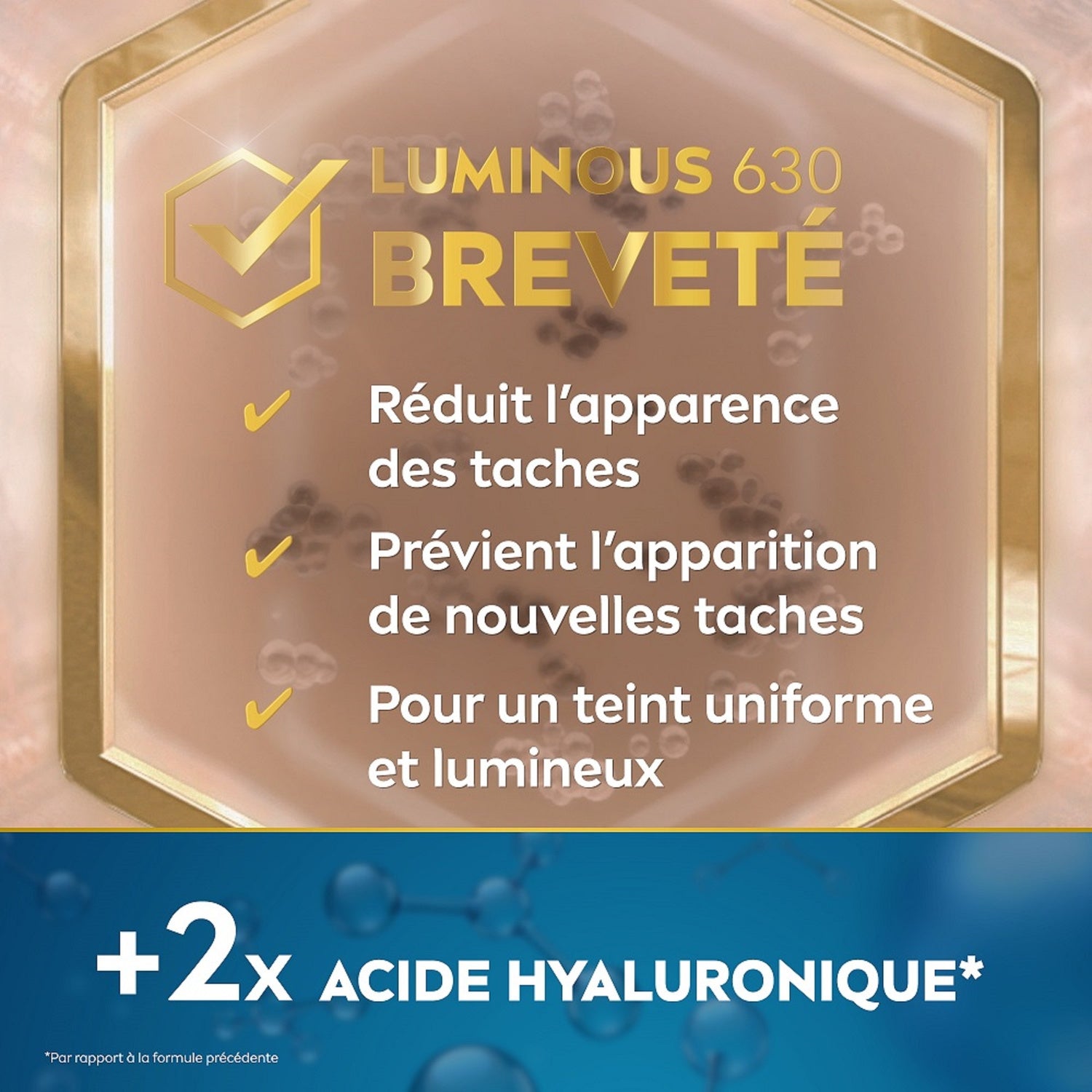 More even and luminous complexionPatented LUMINOUS630® ingredientReduces the intensity of dark spots and their reappearanceDermatologically tested and suitable for all skin types, including sensitive skin
