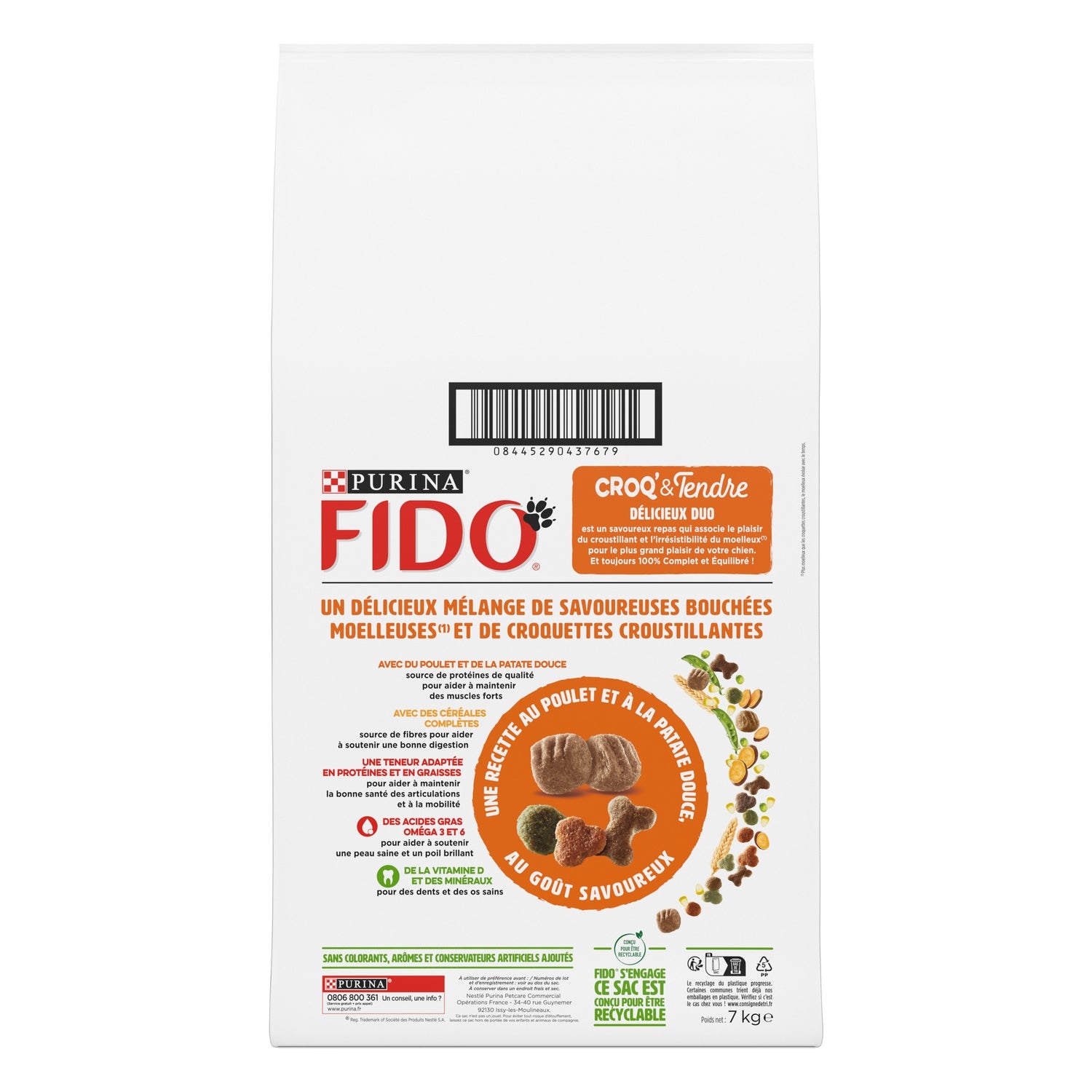 FIDO Croq' & Tendre Délicieux Duo is a tasty meal that combines the pleasure of crunchiness and the irresistible softness(1) for your dog's greatest pleasure. And always 100% Complete and Balanced!
