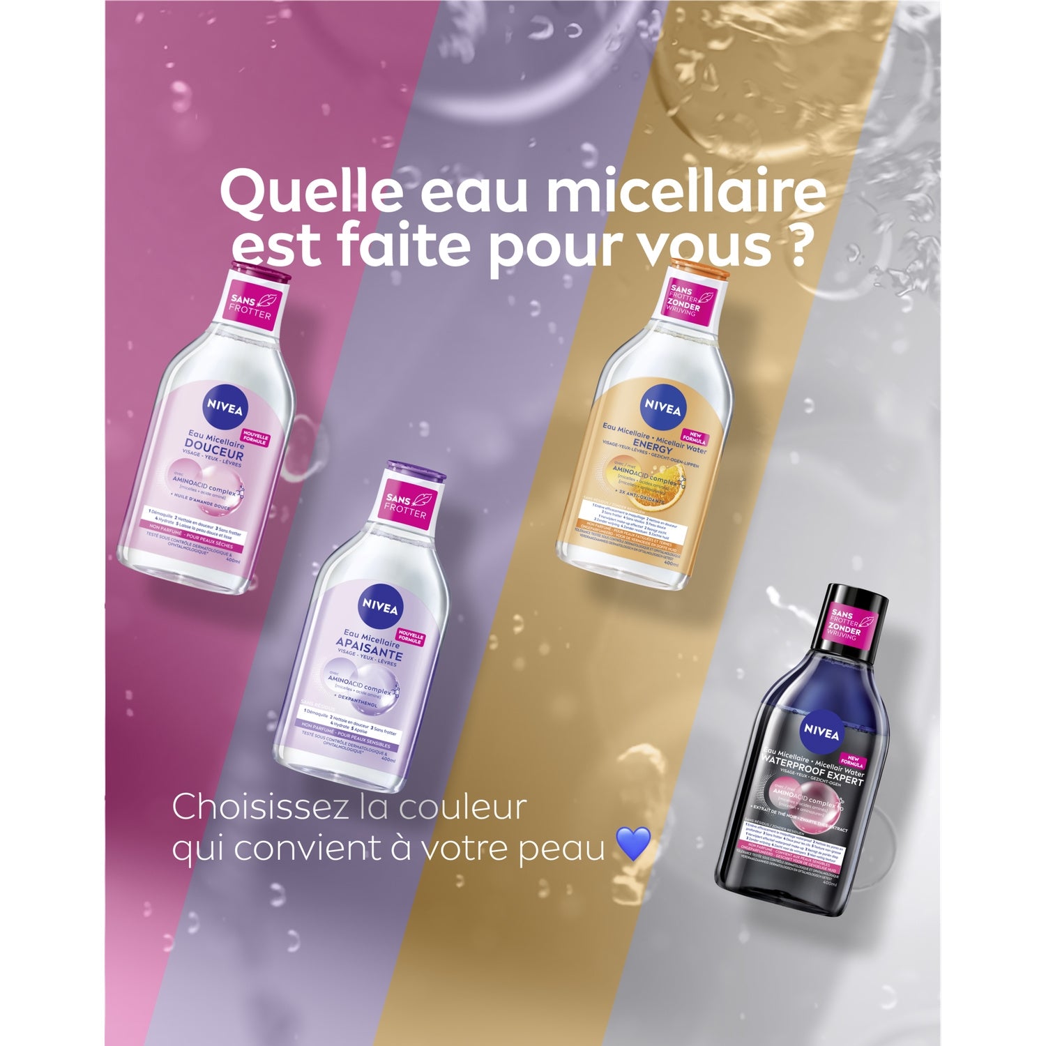 NIVEA Bi-Phase Micellar Makeup Remover with Organic Rose Water gently removes waterproof makeup without rubbing or rinsing. It tones and purifies the skin without drying it out. It effectively cleanses the face for a feeling of freshness before bed. Your skin is cleansed and soft without any visible product residue. It leaves no greasy or dry skin feeling. For fresh, hydrated, and healthy-looking skin that can breathe. Shake the bottle well before use. Soak a cotton pad with makeup remover and gently glide it over the face and eyes without rubbing.