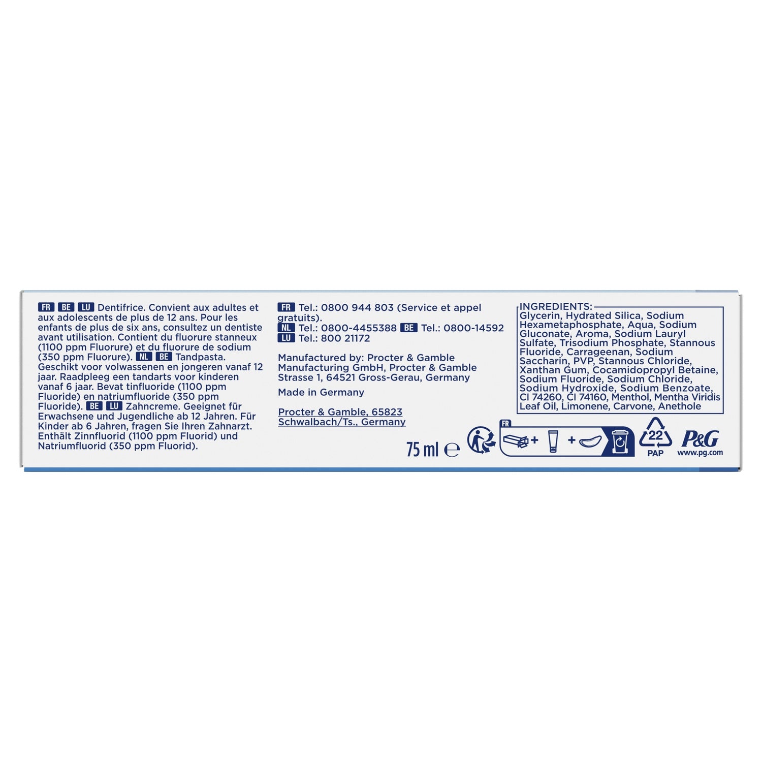 Clinically proven for 24-hour professional protection, used twice a day, Antibacterial technology with stannous fluoride complex helps reduce the build-up of bacterial plaque, even between brushings, Protects in 8 areas: cavities, plaque, tartar, breath, gums, sensitivity, surface stains, enamel, A blend of invigorating spearmint with sweet scents and cooling menthol for an exhilarating fresh feeling, Clinically proven, Whitening crystals