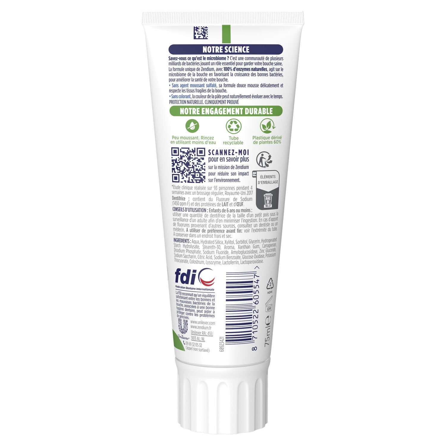 Zendium Freshness Protection toothpaste naturally protects your mouth with natural enzymes and proteins,Toothpaste with a natural antibacterial mode of action, for fresh breath. Strengthens the mouth's natural defenses.,This mild and pleasant tasting toothpaste promotes the balance of the oral microbiome and strengthens your mouth's natural defenses,Formulated without SLS foaming agent, its gentle formula gently foams and respects the delicate tissues of the mouth,Colorant-free, you will be able to notice a natural evolution of the color of the paste without affecting the effectiveness of the product,One of the most recommended brands by dentists in Scandinavia