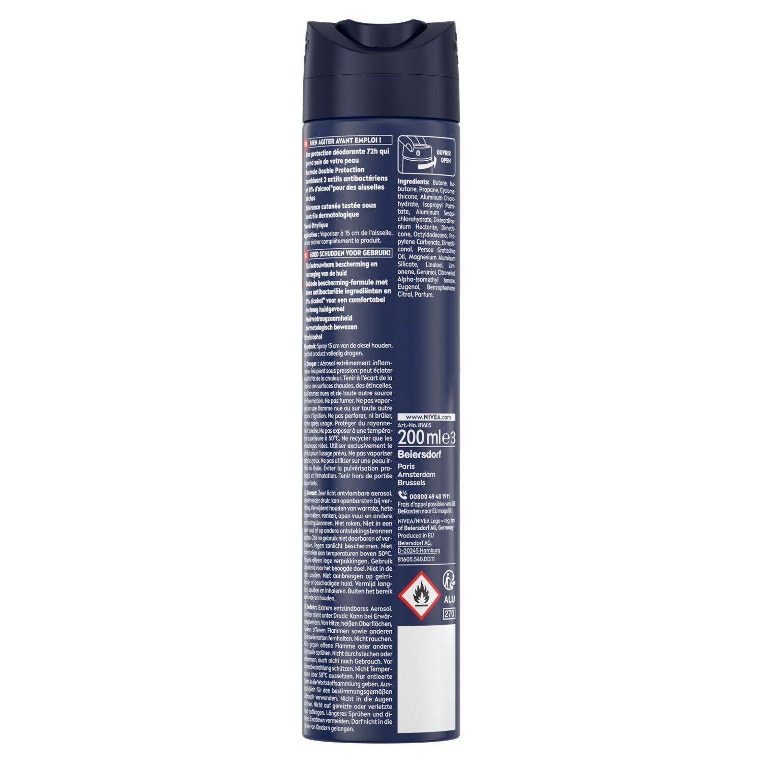 NIVEA MEN Dry Impact Antiperspirant Deodorant provides 72-hour odor protection while caring for your skin. Its Double Protection formula combines 0% alcohol (ethyl alcohol) and two antibacterial active ingredients to fight the growth of odor-causing bacteria, for long-lasting dry underarms. 200ml spray format. Available in a 50ml roll-on format. Directions for use: Spray 15 cm from the armpit. Let dry before getting dressed.