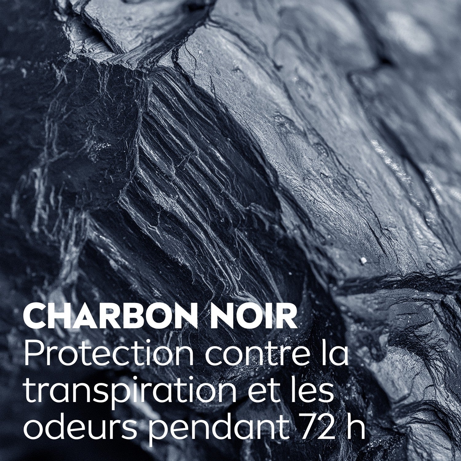 With black charcoal and woody fragranceFor a feeling of dry and clean skinPowerful protection against bacteriaLong-lasting fragrance, effective antiperspirant protection for 72 hoursNo visible black residue
