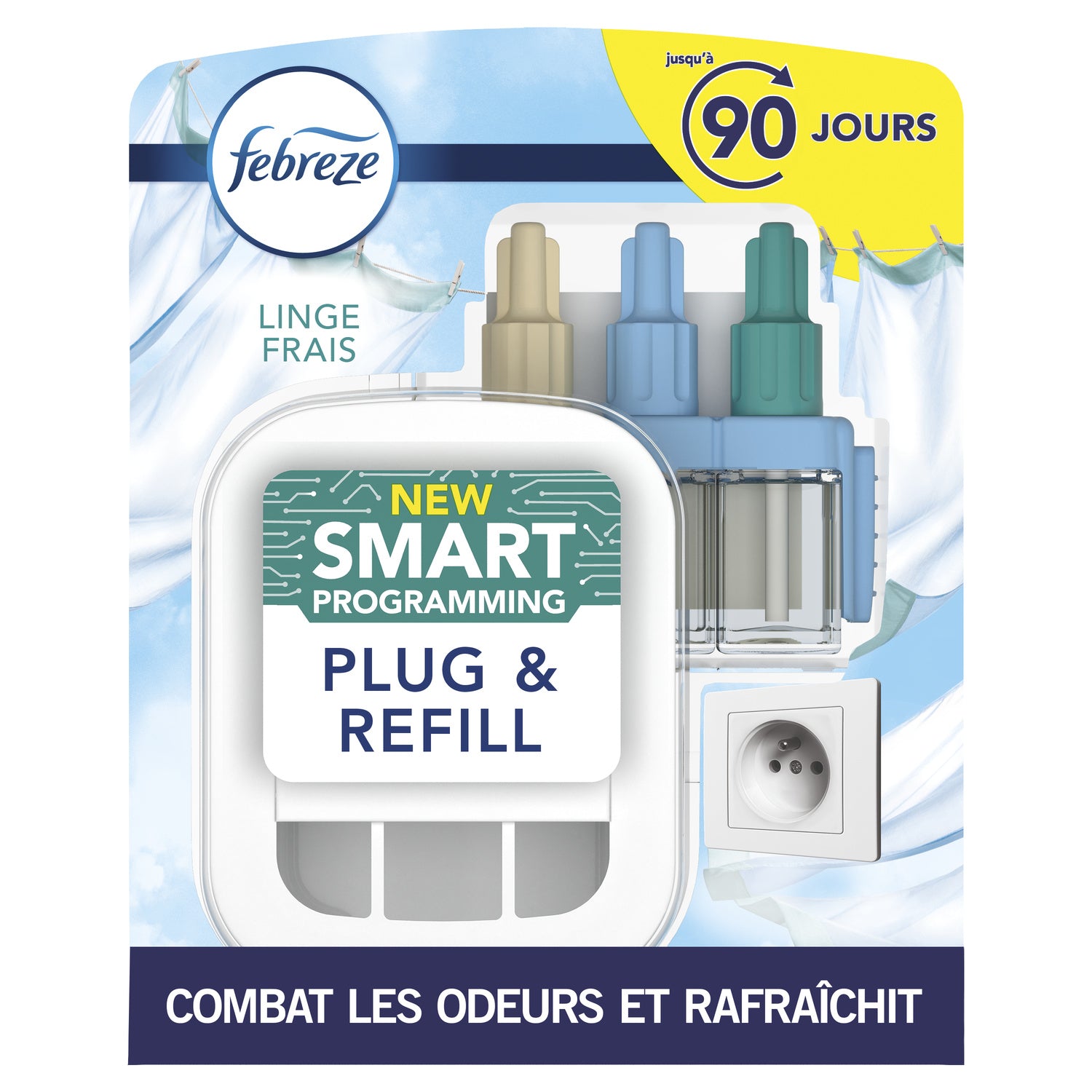 Fights odors continuously and alternates between 3 complementary scents for remarkable freshness,Lasts up to 90 days (used for 12 hours per day on minimum setting),Smart Programming: Digitally controlled fragrance alternation with a fresh scent that travels further,Fresh Linen scent surrounds you with its soft, fresh scent,Febreze OdourClear Technology doesn't mask odors, but fights odors and leaves a fresh scent,3Volution alternates complementary scents every 45 minutes for freshness you notice longer,Febreze electric home air fresheners are available in a wide range of high-quality fragrances