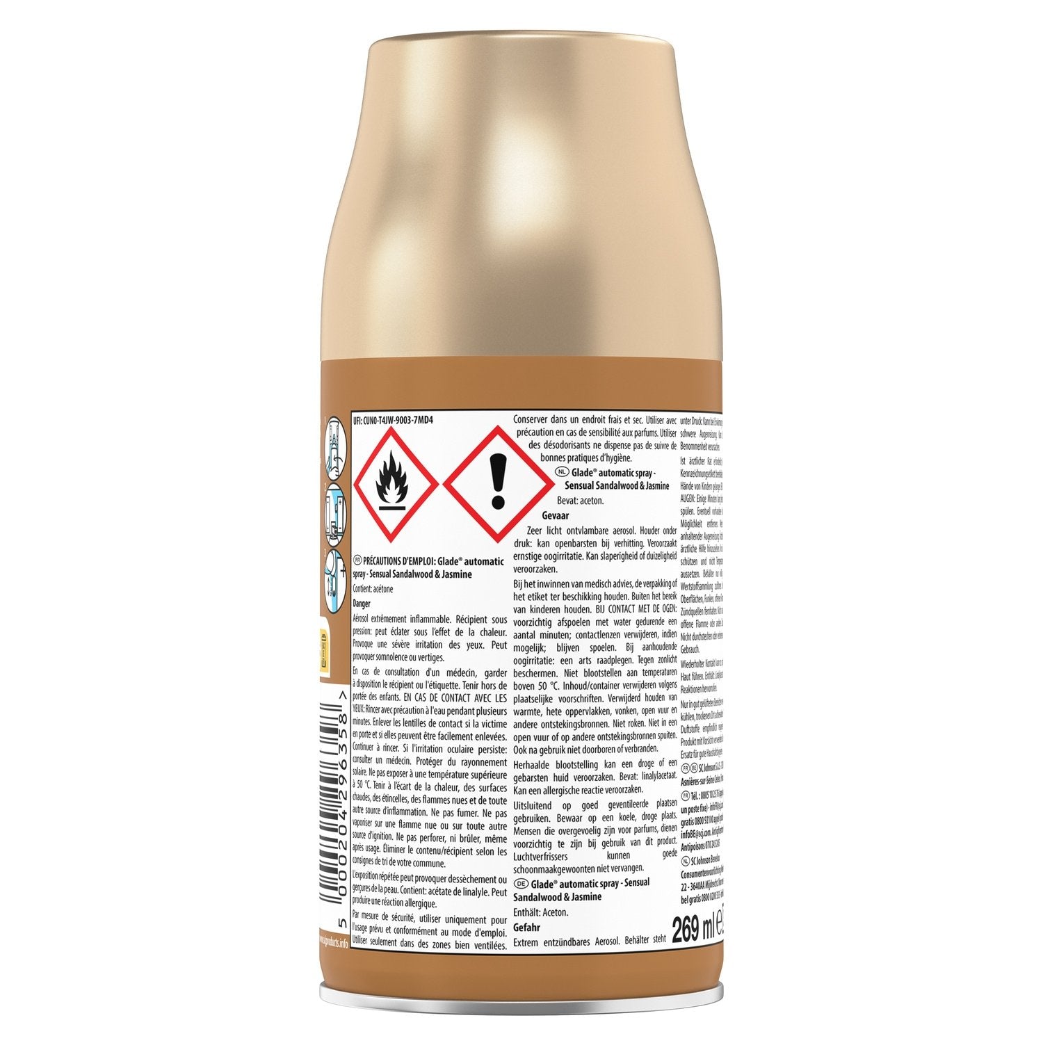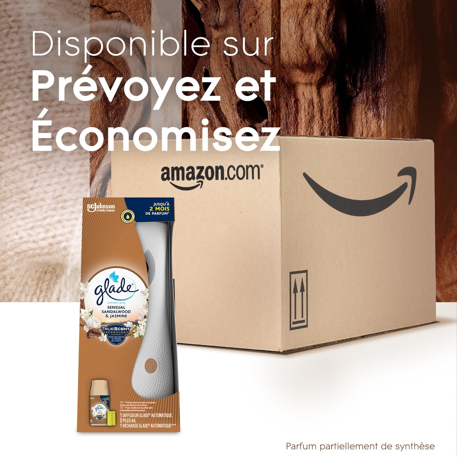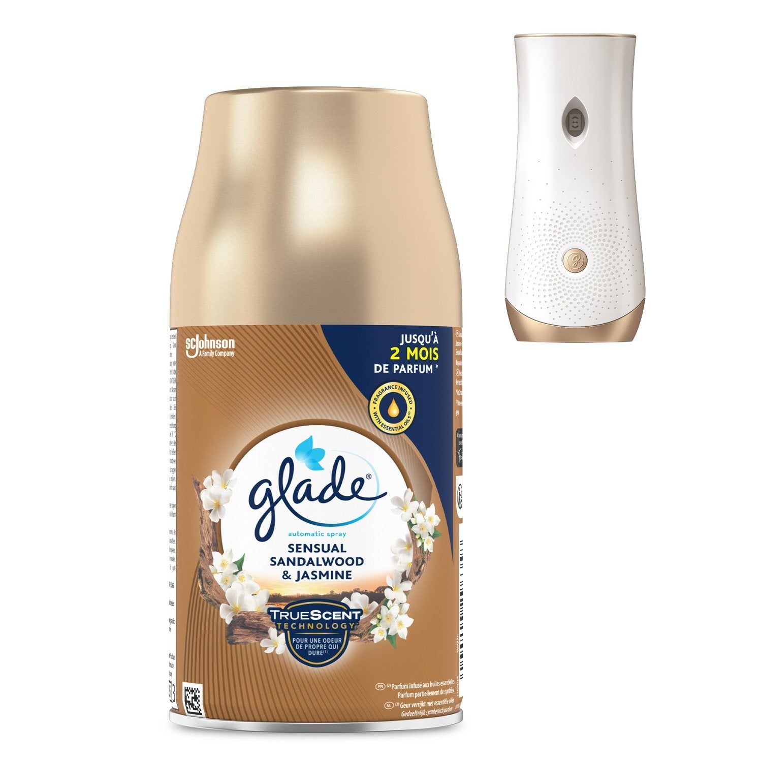 AUTOMATIC SPRAYS: Enjoy instant fresh fragrance throughout your day with the Glade® Automatic Diffuser and its personalized programming every 9, 18 or 36 minutes.,FRAGRANCE: Capture the warm essence of a spa day with notes of jasmine and sandalwood carefully intertwined with amber and bergamot for a moment of pure comfort with our essential oil-infused Sensual Sandalwood & Jasmine fragrance.,FORMULATION: Formulated without phthalates, parabens or formaldehydes. PACK COMPOSITION: The pack consists of one Sensual Sandalwood & Jasmine refill. Dangerous. Follow the precautions for use. Partially synthetic fragrance., ,