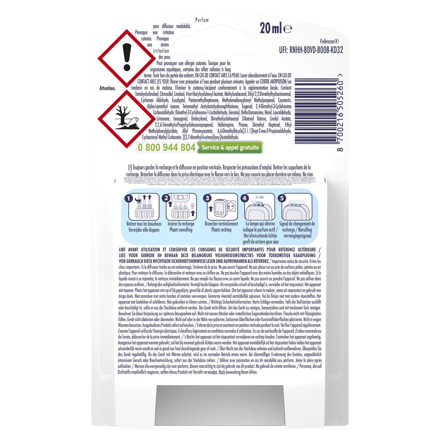 Febreze 3Volution Fresh Linen continuously fights odors and cycles between 3 complementary scents for long-lasting freshness. Lasts up to 90 days (when used 12 hours per day on minimum setting). Let calm surround you as this sweet, healthy scent wafts through the air. With traditional diffusers, we quickly get used to their scents and eventually stop smelling them. Febreze 3Volution renews the freshness by automatically cycling between 3 complementary, high-quality scents every 45 minutes. Use Febreze 3Volution refills with the 3Volution electric diffuser to fill your home with a fresh scent you can smell every moment. With 3Volution, adjust the fragrance intensity level and create the atmosphere you want, when you want.