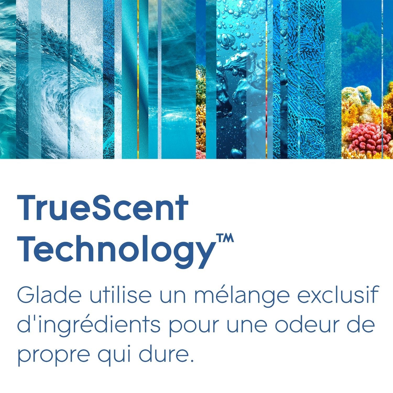 Enjoy an instant fresh scent with Glade® Touch & Fresh refills, designed to combat the toughest odors with a concentrated formula that leaves no wet residue. Our Touch & Fresh diffusers are guaranteed TrueScent Technology™ to ensure a long-lasting feeling of cleanliness thanks to a proprietary blend of ingredients. Their formula provides 2x more freshness than classic Glade® aerosols. They blend perfectly with the decor of your restrooms and bathrooms. Experience adventure for a moment with the ocean notes of this fragrance formulated with marine essences. It will give you the feeling of a trip to the seaside of your favorite destination.