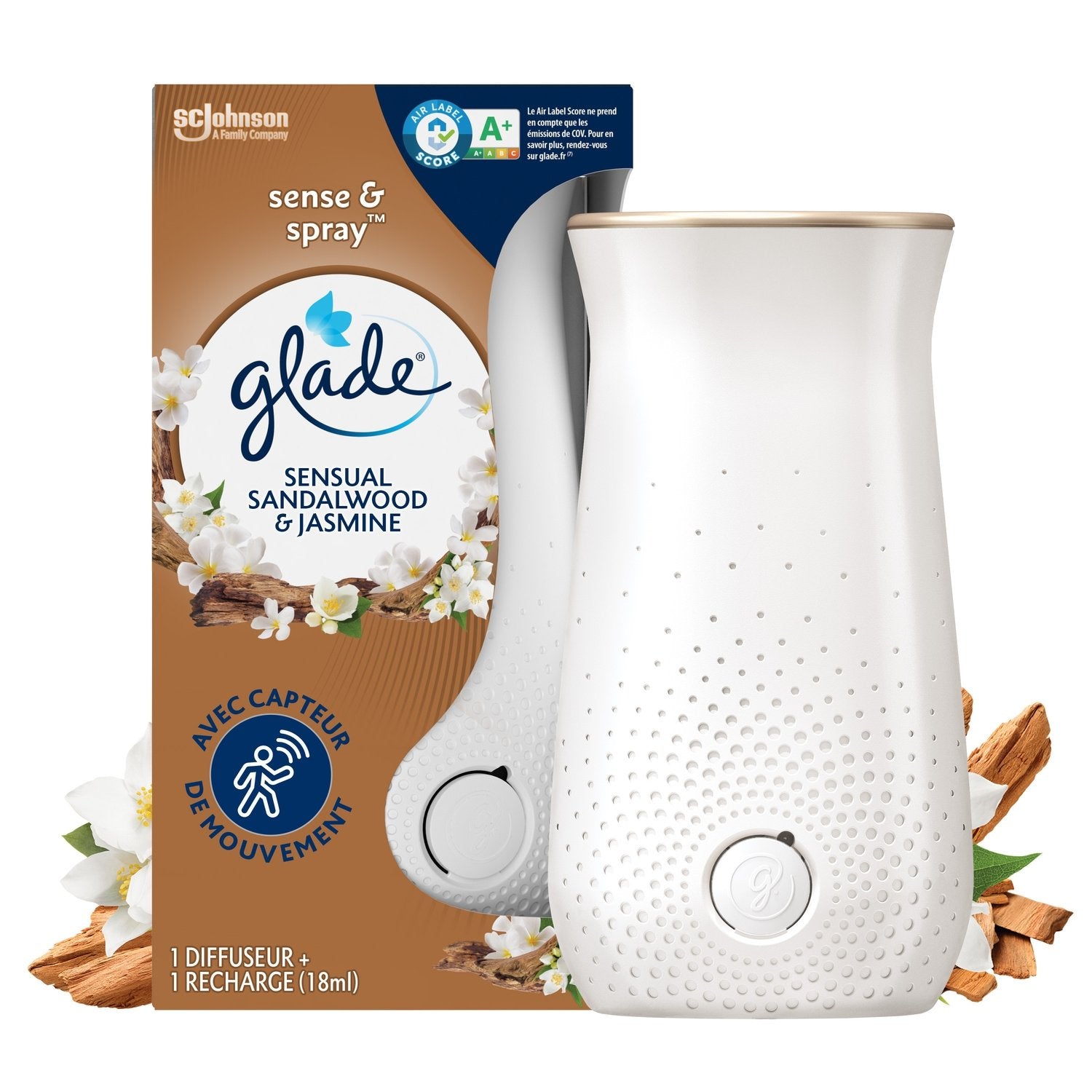 Glade® Sense & Spray™ Sensual Sandalwood & Jasmine, 1 Automatic Motion Sensor Diffuser + 1 Essential Oil Infused Fragrance Refill, 18 ml