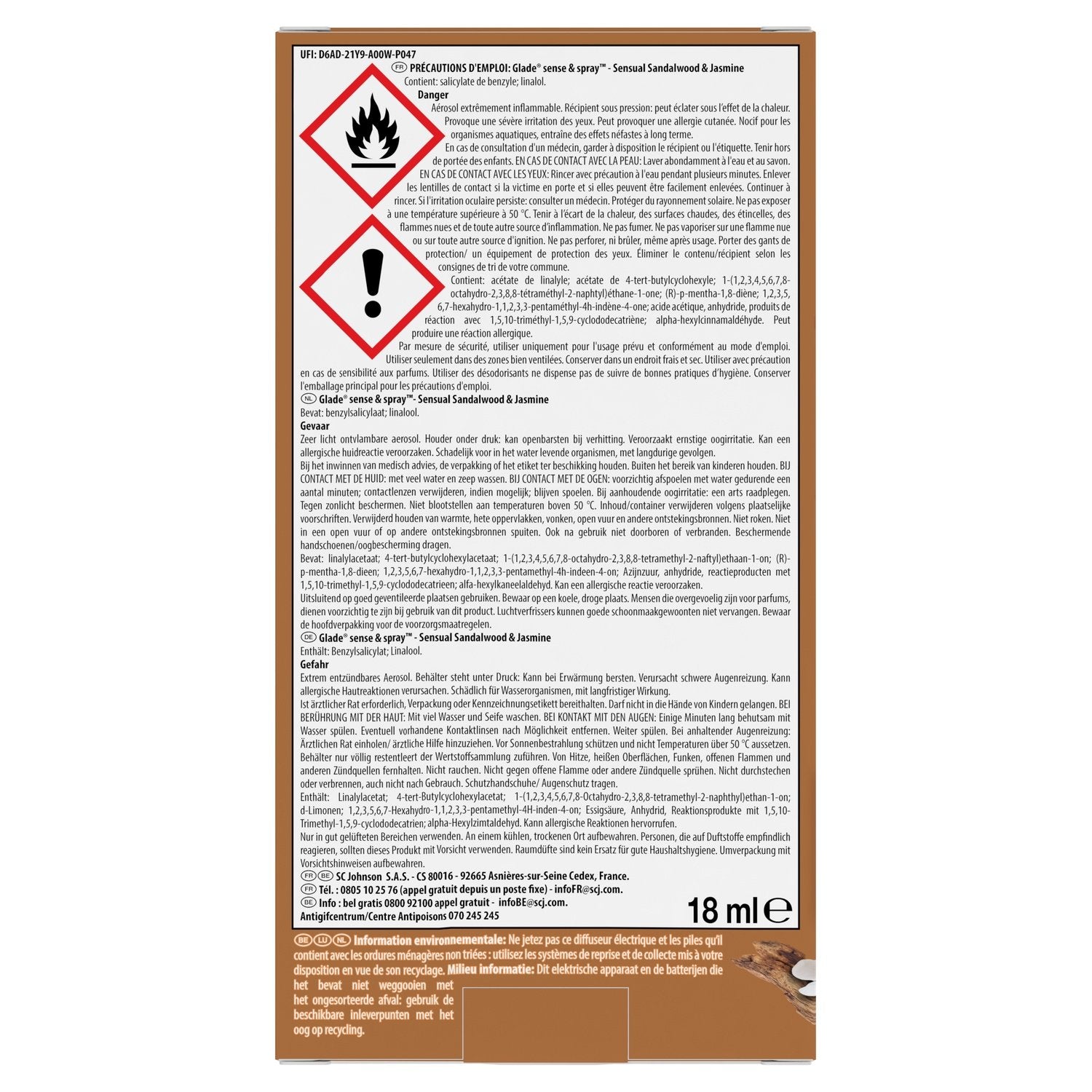Enjoy fresh fragrance throughout your home whenever you want with the Glade® Sense & Spray Diffuser and its motion sensor that activates only when you pass by and automatically enters a 20-minute sleep mode after diffusion. The Boost button on the front of the device allows you to diffuse your fragrance instantly if needed. Our Sense & Spray Diffusers are guaranteed TrueScent Technology™ to ensure a long-lasting feeling of cleanliness thanks to a proprietary blend of ingredients. Their elegant design ensures they blend seamlessly into your home to become a true interior design object. Capture the warm essence of a spa day with notes of jasmine and sandalwood carefully intertwined with amber and bergamot for a moment of pure comfort with our Sensual Sandalwood & Jasmine fragrance infused with essential oils.