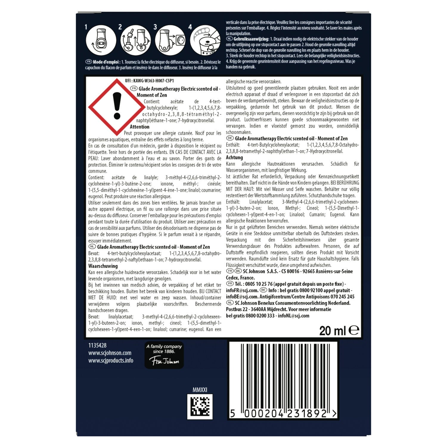 Glade® Aromatherapy Electric Scented Oil Diffuser + Moment of Zen® Refill, Lavender & Sandalwood, 20 ml