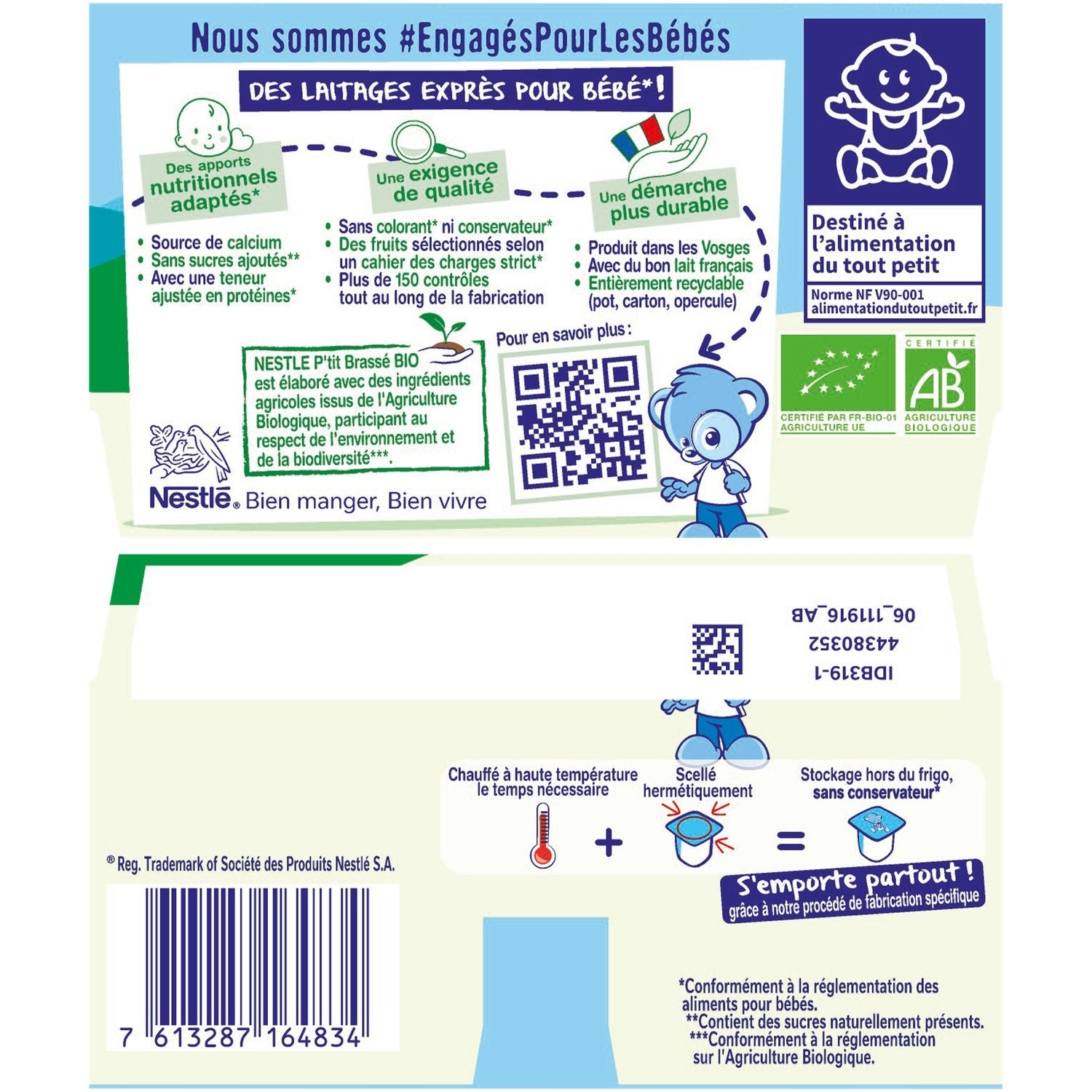 P'TIT Brassé Fraise BIO, organic milk specially for babies*, with no added sugar** and produced in France! Ingredients from organic farming that help respect the environment and biodiversity. It's practical and can be taken anywhere thanks to our specific manufacturing process, which allows it to be stored outside the refrigerator. *Complies with baby food regulations. **Contains naturally occurring sugars.