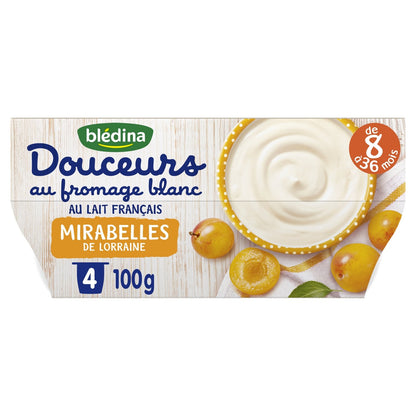 An expert in food diversification for over 100 years, Blédina is here to help you with all your baby's meals. Our mission? To awaken their curiosity for real food, thanks to over 250 recipes designed by nutritionists and perfectly adapted to their needs. Discover Blédina's Fromage Blanc Sweets: delicious recipes with a creamy texture to offer your baby indulgent moments from 8 months old. Introduce baby to the combination of Fromage Blanc and Mirabelle plum flavors! A dairy product suitable for baby's lunch, snack, and dinner!