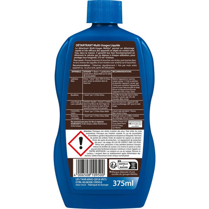 MELITTA DESCALER, MULTI-PURPOSE LIQUID 375 ML, allows very effective descaling of appliances and objects in contact with water (Kettles, coffee makers, etc.)