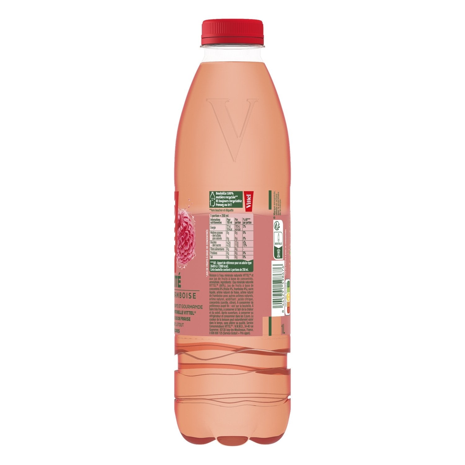 Ingredients: Vittel natural mineral water (86%), fruit juice from concentrate 8% (strawberry 4%, raspberry 4%), liquid sugar, natural strawberry flavoring, natural raspberry flavoring with other natural flavorings, natural flavoring, acidifier: citric acid, concentrates (carrot, lemon).