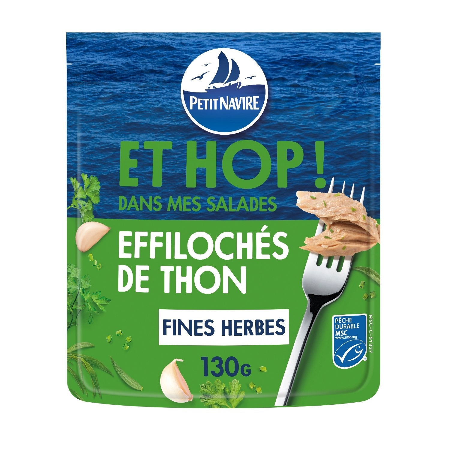 TUNA (84%), sunflower oil, water, herbs (parsley, chives, tarragon) (1.7%), cider vinegar, garlic puree (0.6%), shallot,