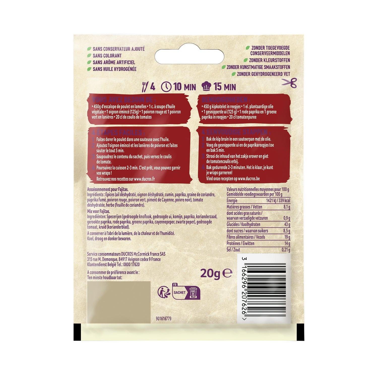 Ingredients: Spices (dehydrated garlic, dehydrated onion, cumin, paprika, coriander seed, smoked paprika, red bell pepper, green bell pepper, cayenne pepper, black pepper), dehydrated tomato, herb (coriander leaf).