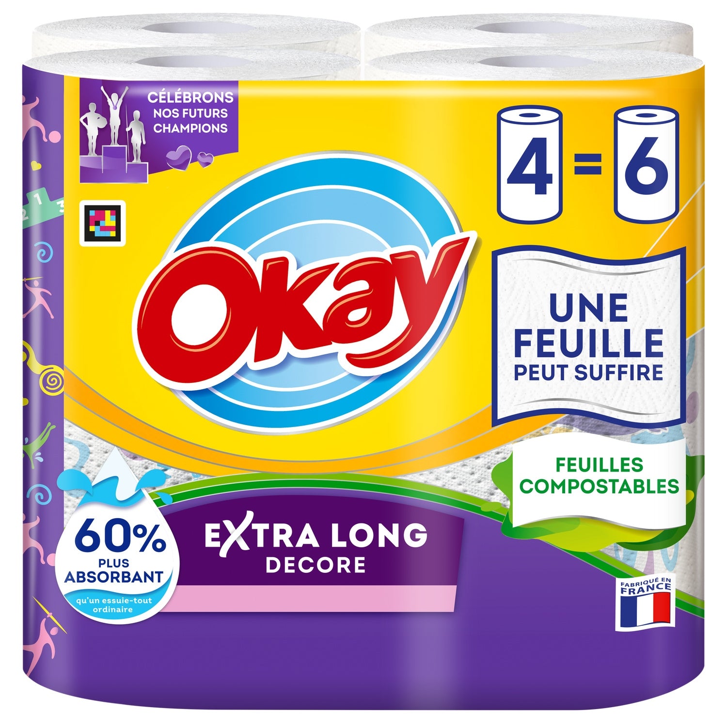 With 50% more sheets than a standard Okay roll, Okay Extra Long rolls last longer so you never run out of paper towels. They're also 60% more absorbent and so effective that a single sheet can be enough to wipe up messes all over your house. Plus, the sheets are compostable!