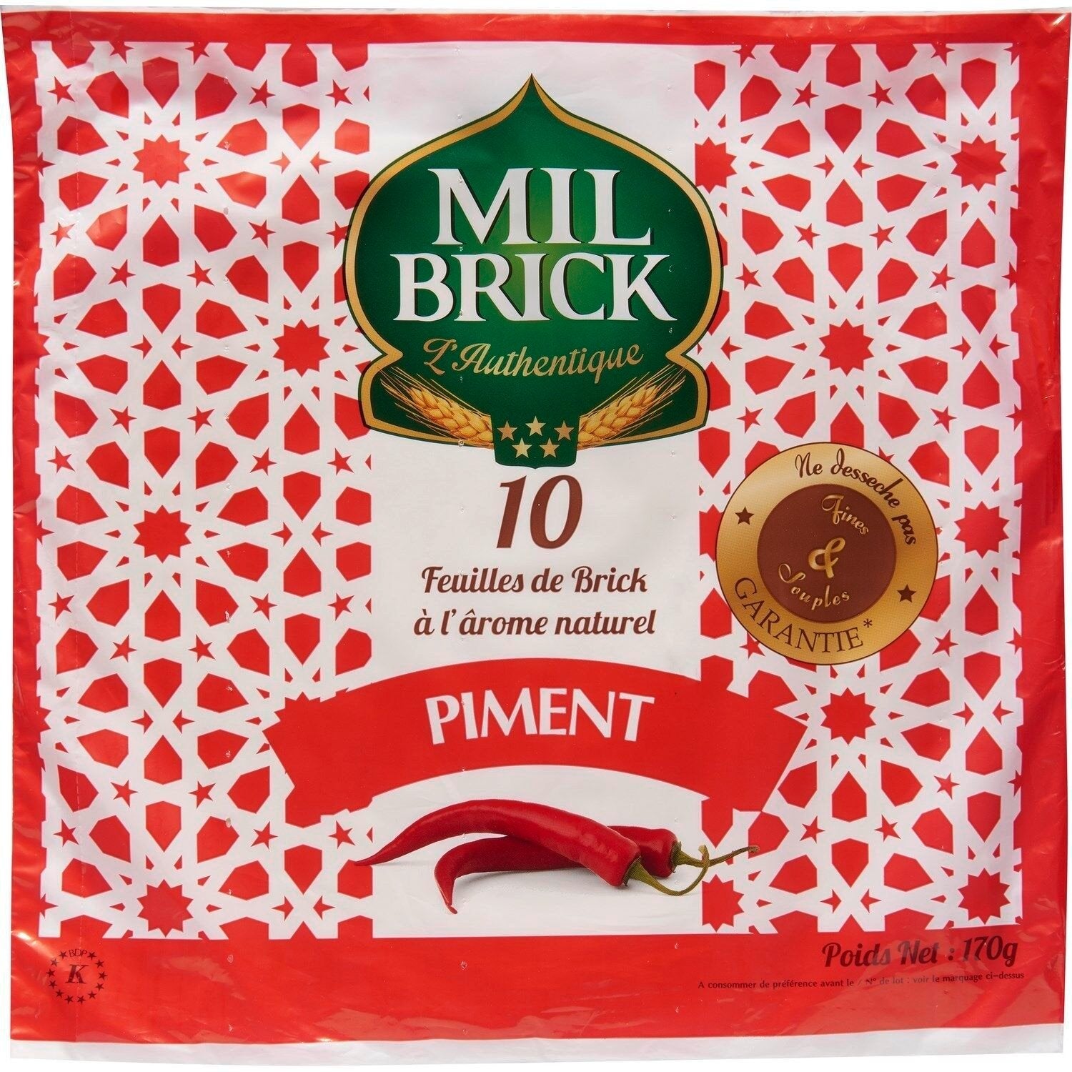 10 sheets of brick pastry with natural chili flavor