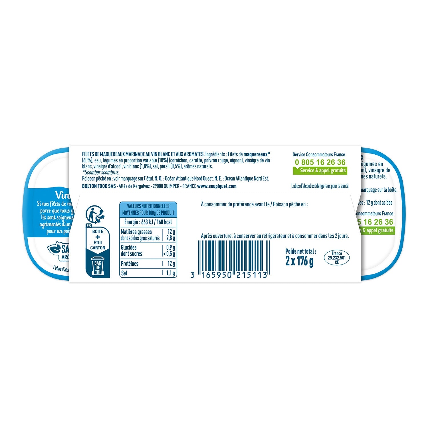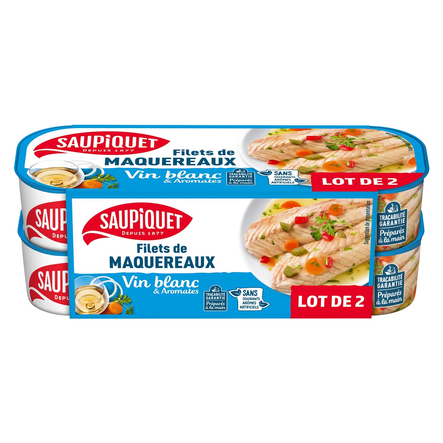 SAUPIQUET - Mackerel Fillets in White Wine - 2 cans of 176g