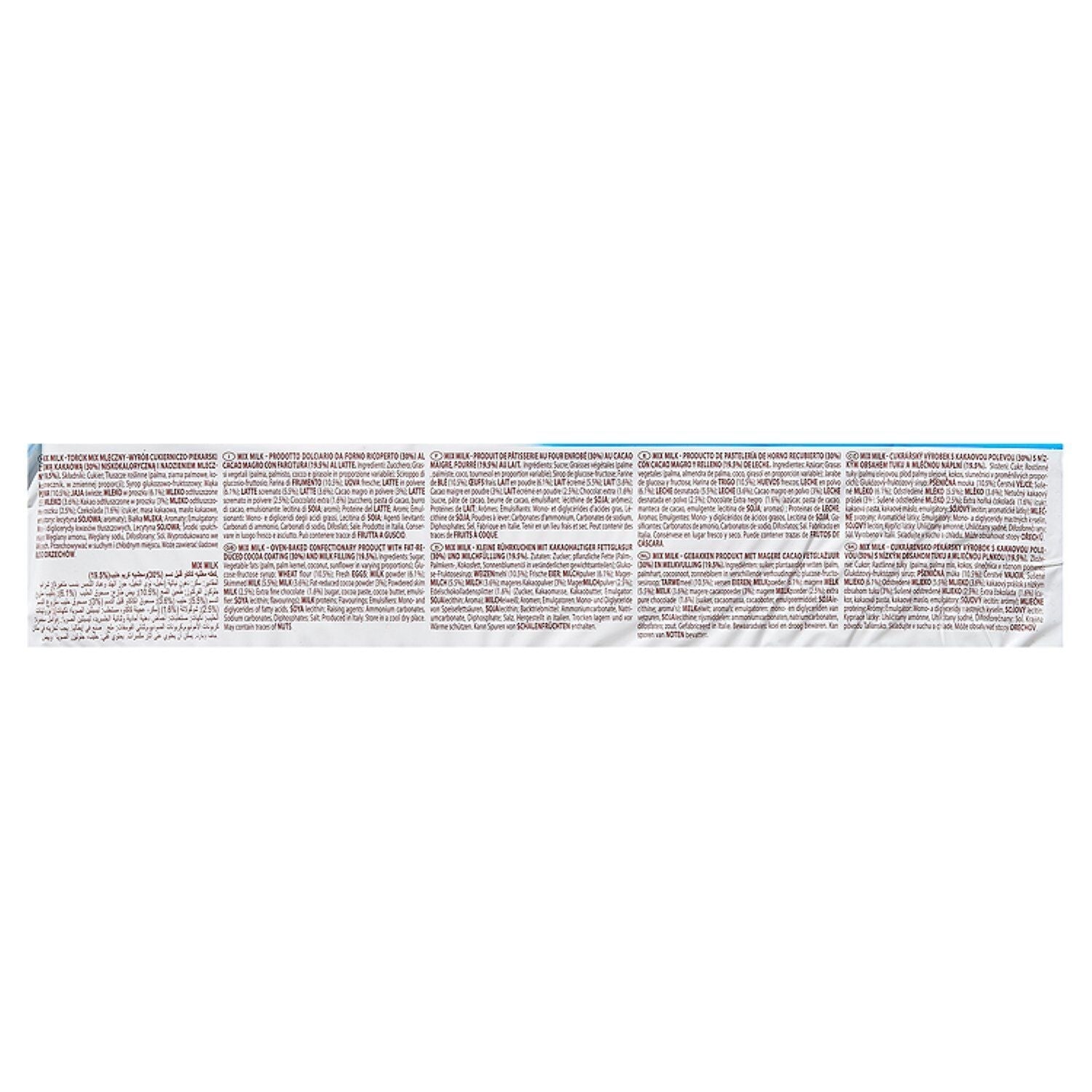 Mix milk - baked pastry product coated (30%) with low-fat cocoa, filled (19.5%) with MILK.