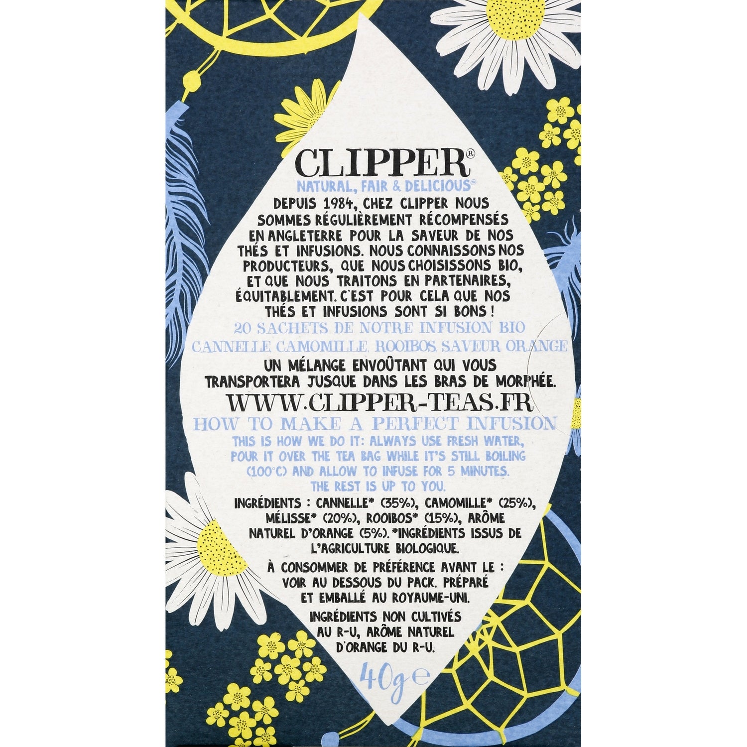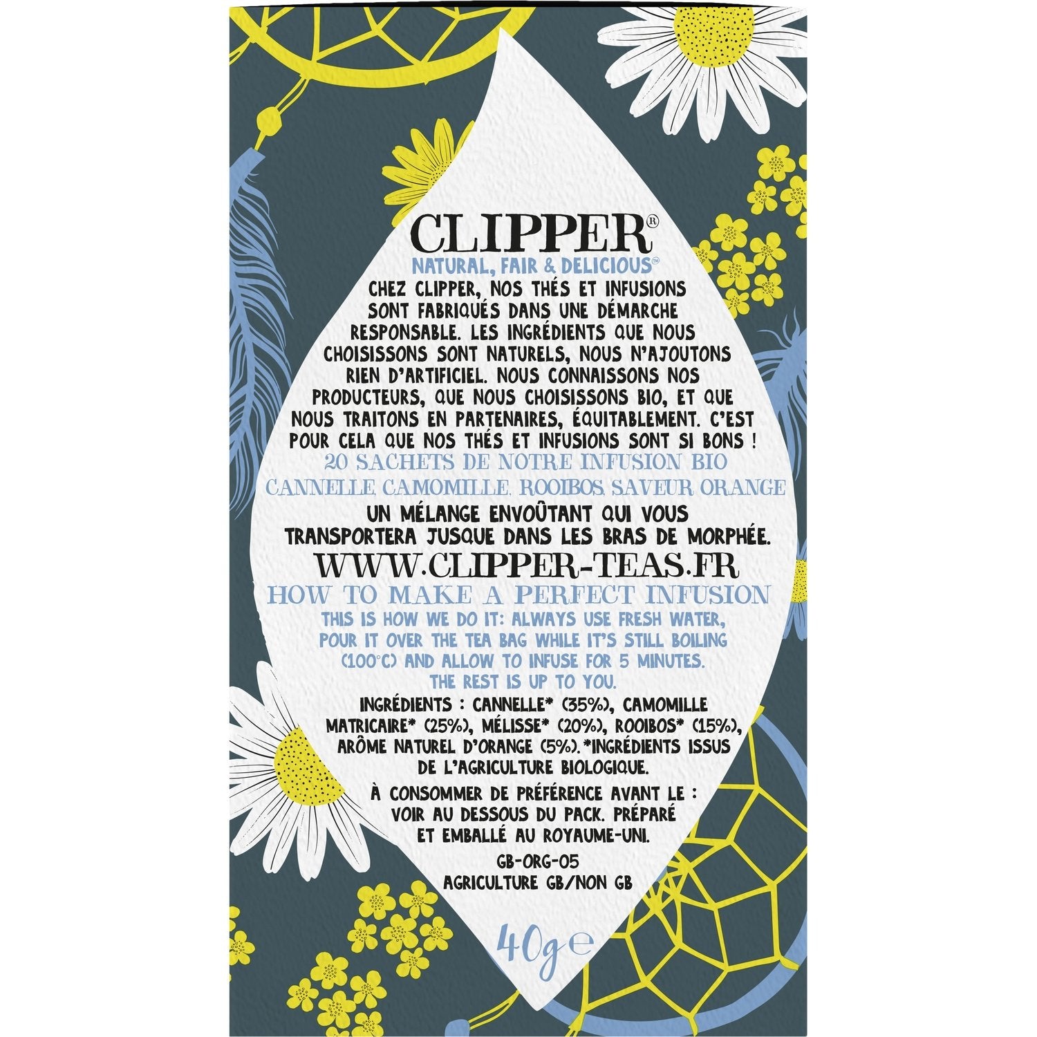Discover Clipper Dreamcatcher Infusion and let yourself be carried away by its notes of cinnamon, chamomile, and rooibos. Organic and naturally caffeine-free, this orange-flavored herbal tea is ideal before a good night's sleep.