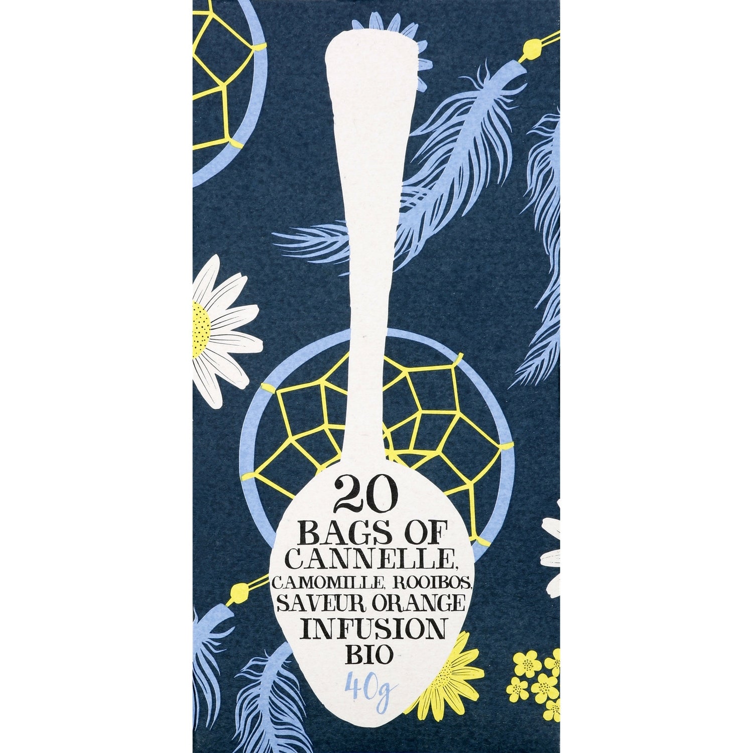 Organic infusion with cinnamon, chamomile, rooibos, and orange flavor