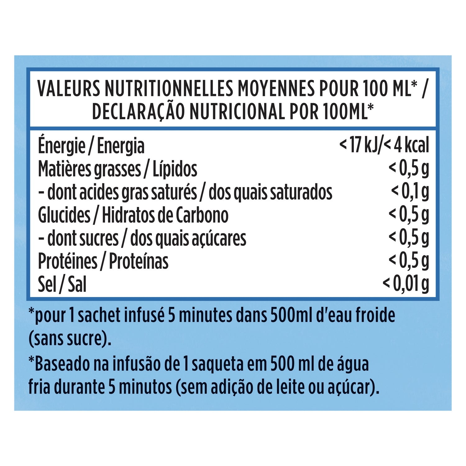 With its delicious and refreshing taste of fruits and plants, Lipton® Cold Brew Lime Mint is the new drink that helps you stay hydrated throughout the day. The perfect drink to take anywhere to flavor the water in your bottle and enjoy it at any time of day. Enjoy drinking water again with the 15 Lipton® Pyramid® Bags. A refreshing blend that combines the tangy taste of lime with the delicious taste of mint. Lipton Cold Brew recipes are made with only plants, fruits and natural flavors. They are sugar-free, calorie-free and caffeine-free. For a perfect tasting experience, let the Pyramid infusion bag infuse for 5 minutes in 500 ml of cold water, shake and enjoy! Lipton Cold Brew is also available in the following flavors: Lemon & Chamomile, Hibiscus & Pomegranate, Peach & Raspberry, Mango & Rooibos. Our Pyramid® cold brew bags are plant-based. With Lipton® Cold Brew, you can stay hydrated while being kind to the planet. Lipton® is committed to sustainable development with its Rainforest Alliance certification. 100% of Lipton® tea comes from Rainforest Alliance certified plantations, making tea kinder to farmers and the environment. Lipton® is committed to supporting smallholder farmers through its sustainability policy. Our history: When Sir Thomas Lipton founded his company in the late 19th century, he bought his first tea plantation in Ceylon (Sri Lanka). More than a hundred years later, Lipton owns thousands of hectares of quality tea bushes in East Africa. Built on over a century of experience in growing and blending tea, Lipton has retained Sir Thomas's love of innovation and excellence. Lipton is based on strong values inspired by its founder: naturalness, optimism, and dynamism. In this spirit of inventiveness, research, and discovery, Lipton helps people discover the benefits of brewed tea, whether black or green. A modern brand that moves away from the traditional codes of "tea-time," Lipton has based its success on the development of a "tasting experience" based on moments of shared pleasure, discovery, and conviviality. All Lipton tea comes from Rainforest Alliance-certified plantations, for a tea that is more respectful of both farmers and the environment.