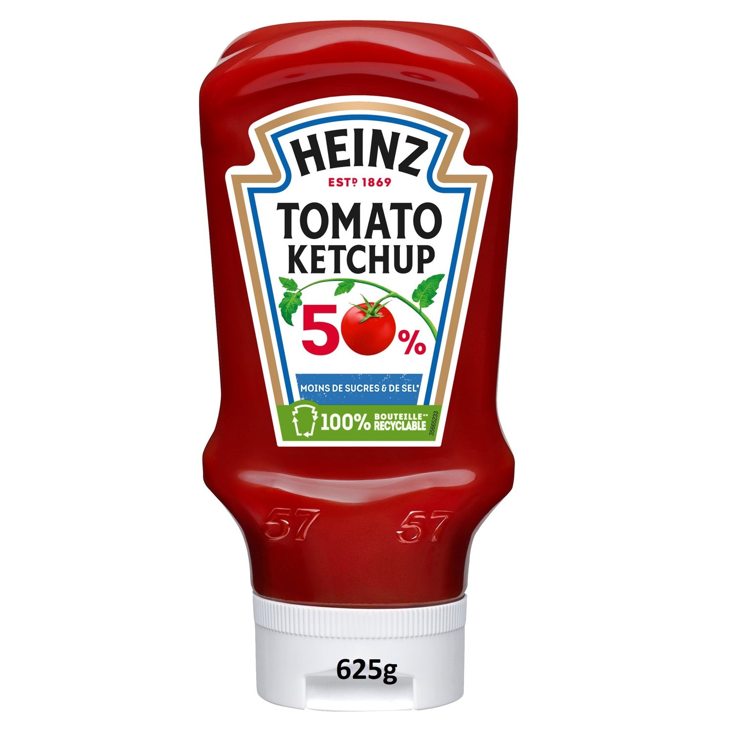 Discover Heinz Tomato Ketchup and its iconic taste. Our sun-drenched tomatoes, combined with our passion and expertise, give our recipe such a unique taste. No other tomato ketchup tastes like ours. A perfect sauce for barbecues with friends, for meat dishes with the family, but also for vegetables or simply classic hamburgers and fries. For maximum convenience, discover this flexible "upside down" bottle equipped with a silicone valve cap. For a sauce that's always ready to be enjoyed, easy dosing and a cap that's always clean after use. Don't hesitate to also discover our different varieties of Tomato Ketchup, such as the organic version, the light versions, the spicy version, and the pickle-flavored version. Our Ketchup is available in squeeze bottles in 250g, 342g, 425g, 460g, 570g, 625g, 700g, 910g and 1kg sizes.'