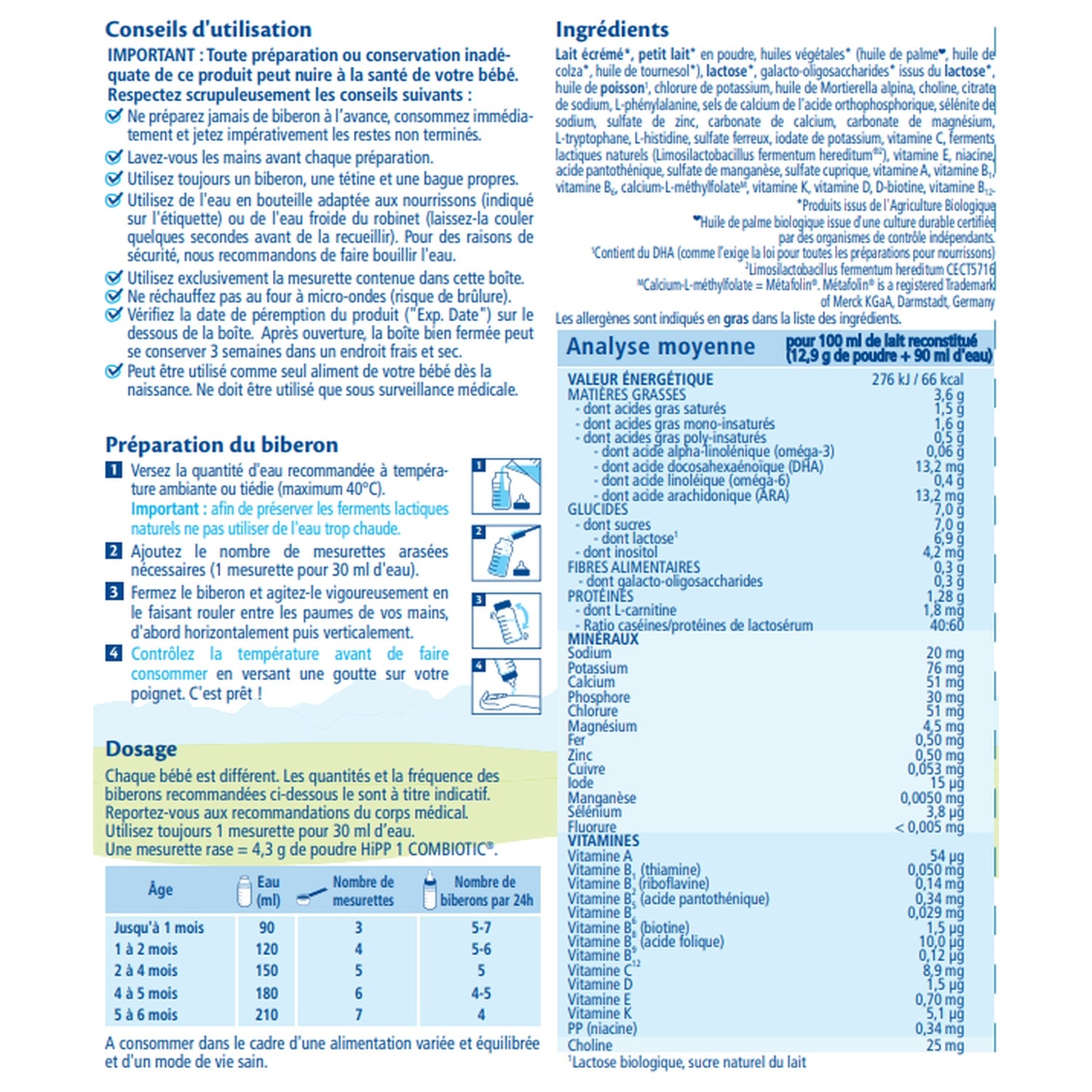 HiPP, expert in infant formula for 50 years Our unique HiPP COMBIOTIC® complex Our latest generation of HiPP 1 COMBIOTIC® infant milk contains: ✔ Natural lactic ferments (L. fermentum). ✔ Lactose as the only carbohydrate. ✔ DHA (docosahexaenoic acid), an essential fatty acid from the omega 3 family*. *As required by law for all infant formula.