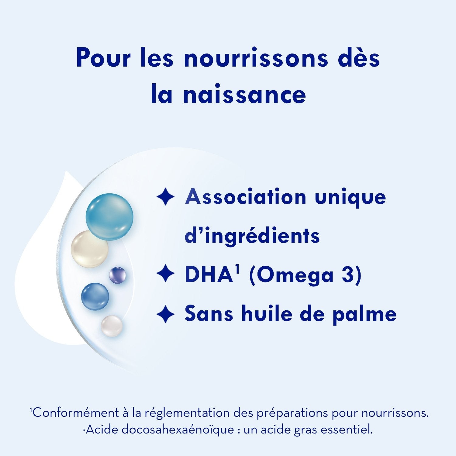 A unique combination of ingredients and nutritionally complete. (Suitable as the sole source of nutrition from birth and within a diversified diet from 6 months. In accordance with infant formula regulations), NO FLAVOR, NO PALM OIL, NO PRESERVATIVES (In accordance with infant formula regulations), 2 sachets of 600g (1.2kg)