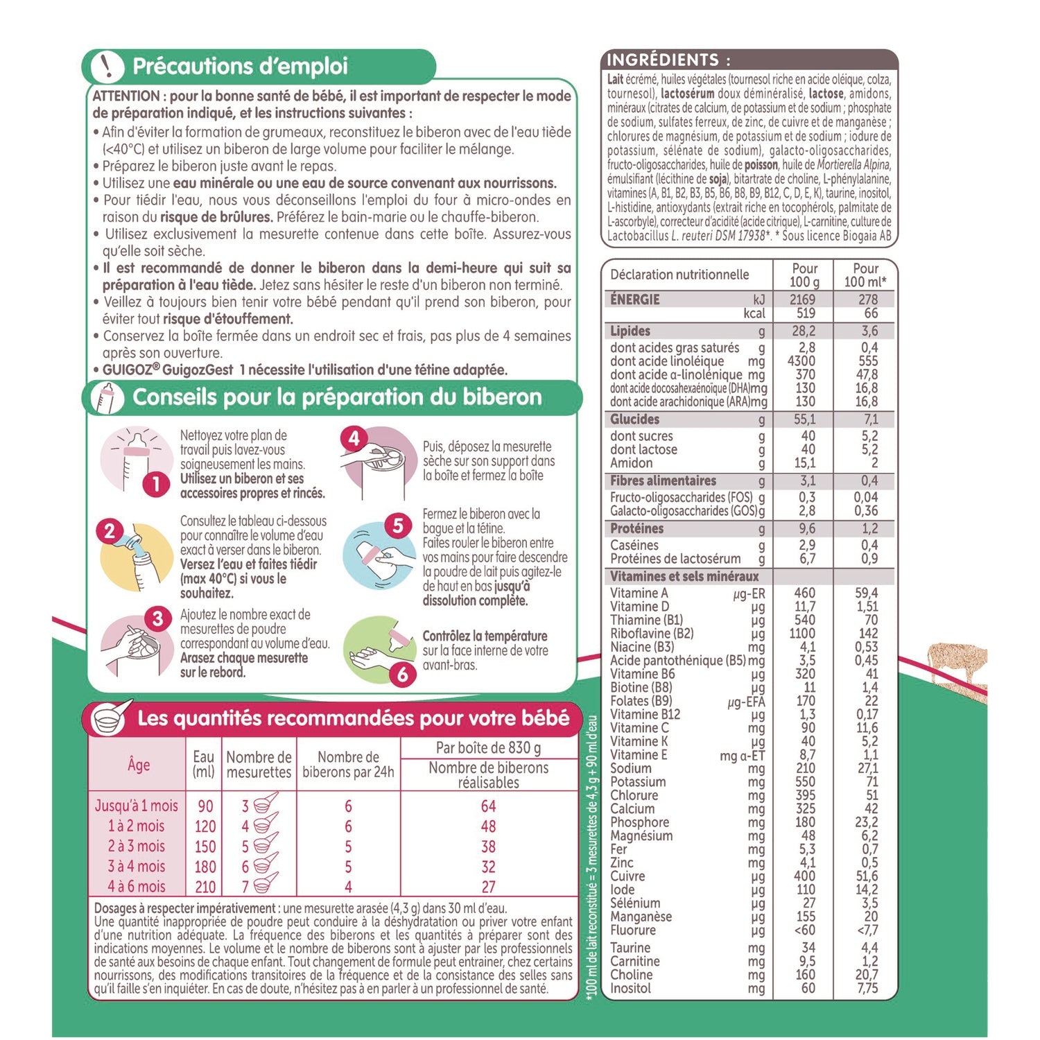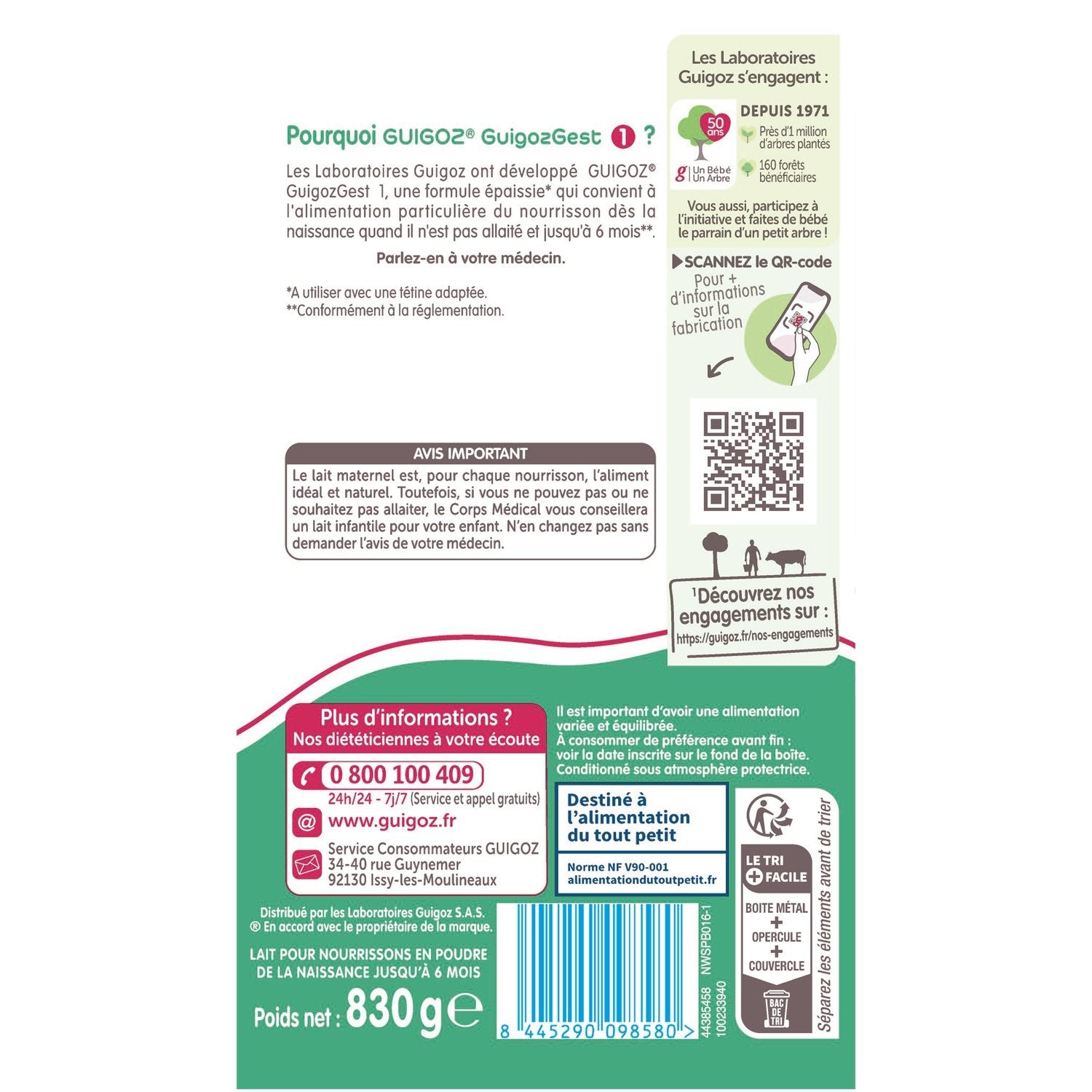Why GuigozGest 1? Guigoz Laboratories have developed GuigozGest 1, a thickened formula* suitable for special feeding of infants from birth when not breastfed and up to 6 months**. Talk to your doctor.*To be used with a suitable teat.** in accordance with the regulations for infant milk.