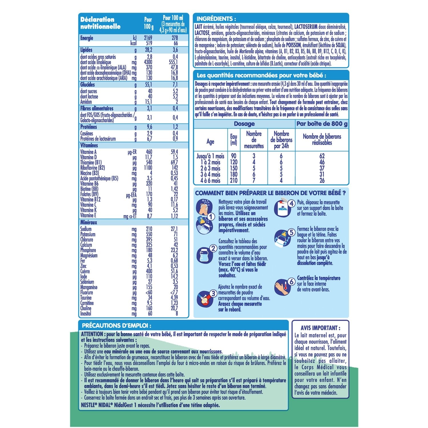 NESTLE NIDAL NidalGest 1 is a thickened formula requiring the use of a suitable teat, which is suitable for the special feeding of infants from 0 to 6 months when they are not breastfed*. *In accordance with the regulations on infant formula.