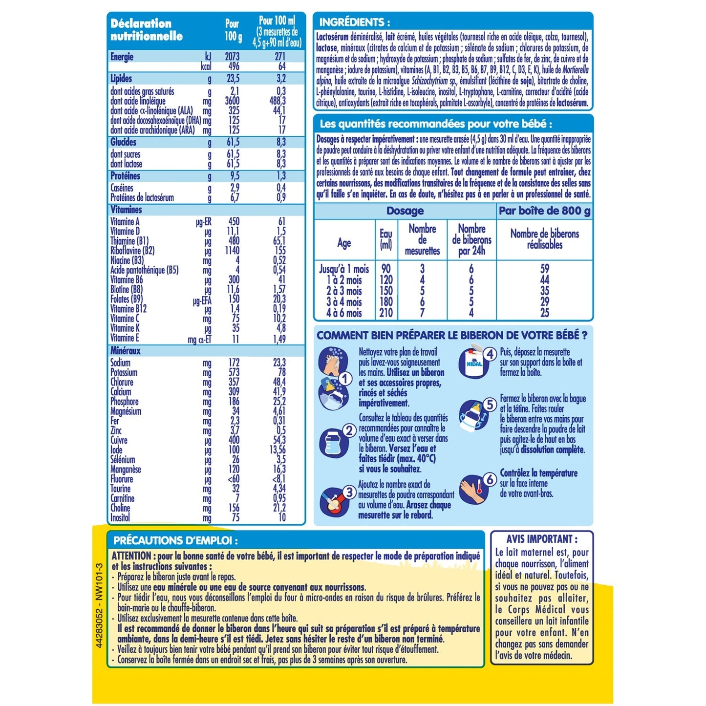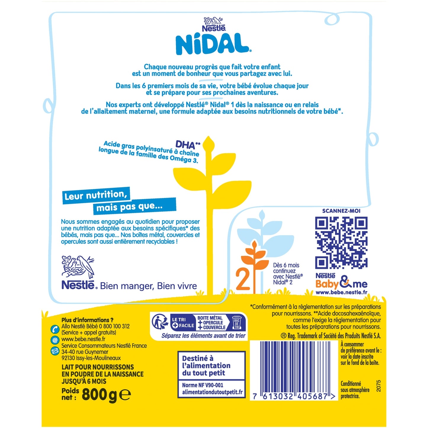 NESTLE NIDAL 1 is suitable for the special nutrition of infants from 0 to 6 months from birth when they are not breastfed or following breastfeeding*. *In accordance with regulations on infant formula.