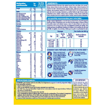 Suitable for the special nutrition of infants from 0 to 6 months from birth or as a follow-up to breastfeeding*,DHA**, long-chain polyunsaturated fatty acid from the Omega 3 family,*In accordance with regulations**Docosahexaenoic acid, as required by regulations for infant milks